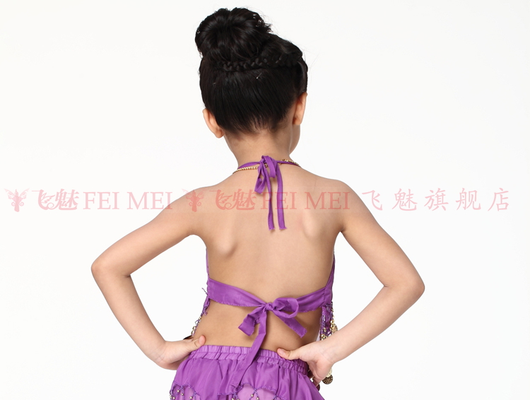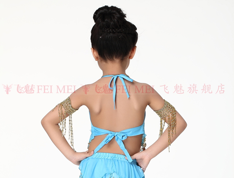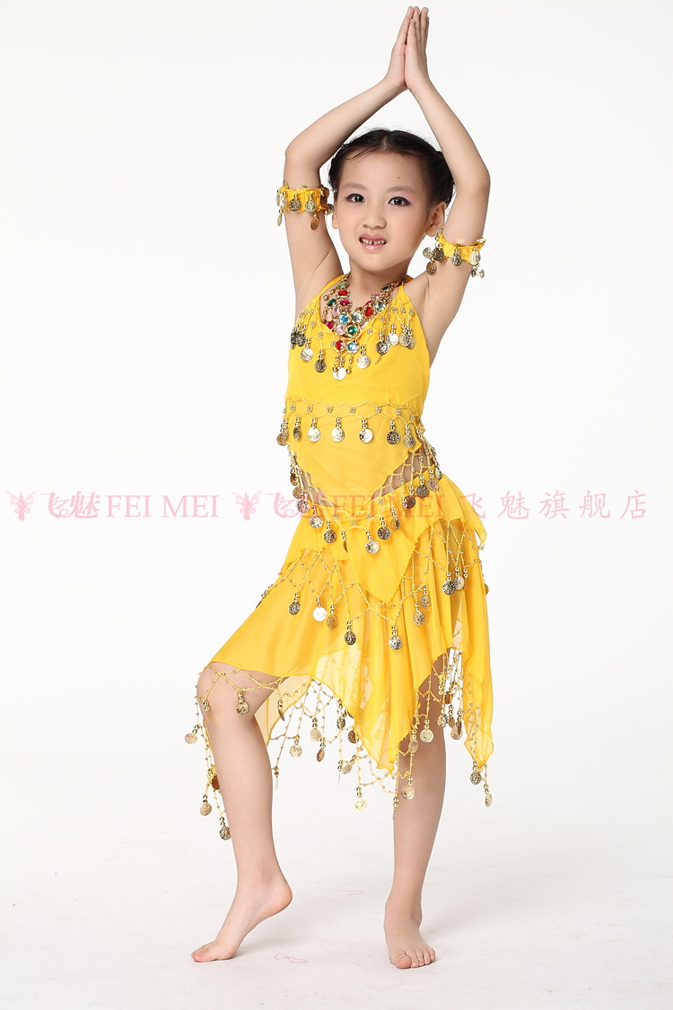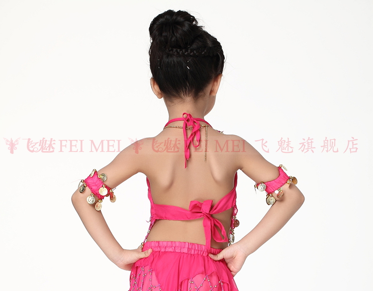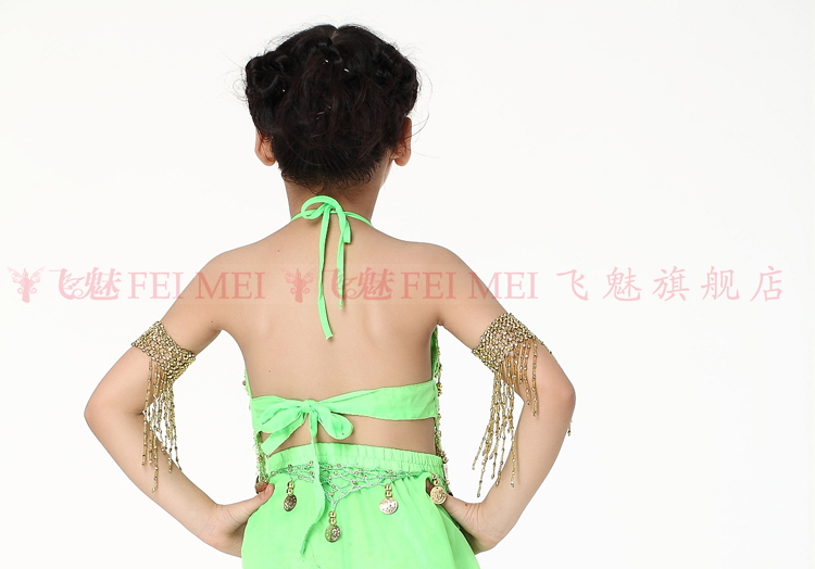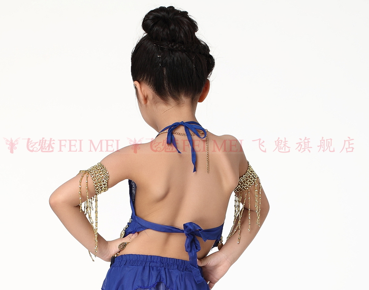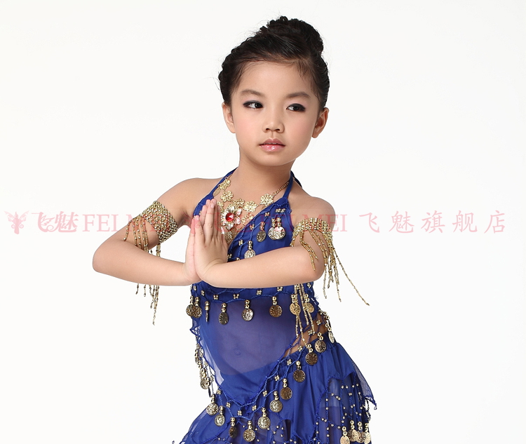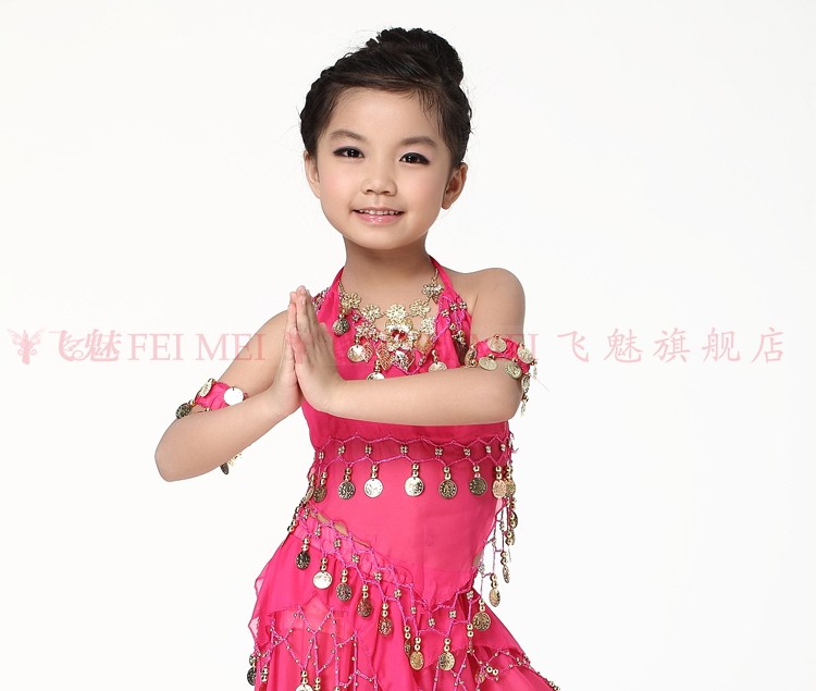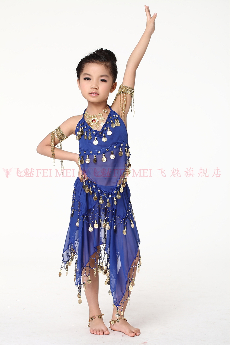 飞魅 Новая одежда для детского танца живота, танцевальная топ с животом с полосой Belly Band, шифоновая висящая монетная топ