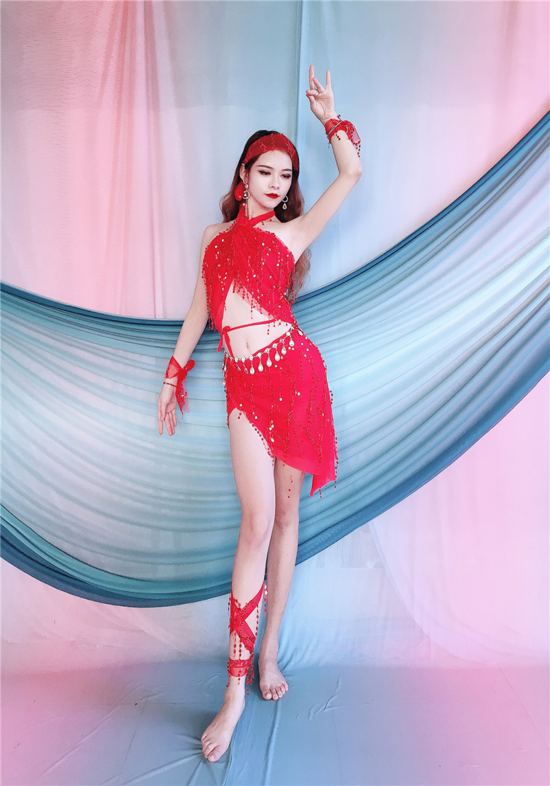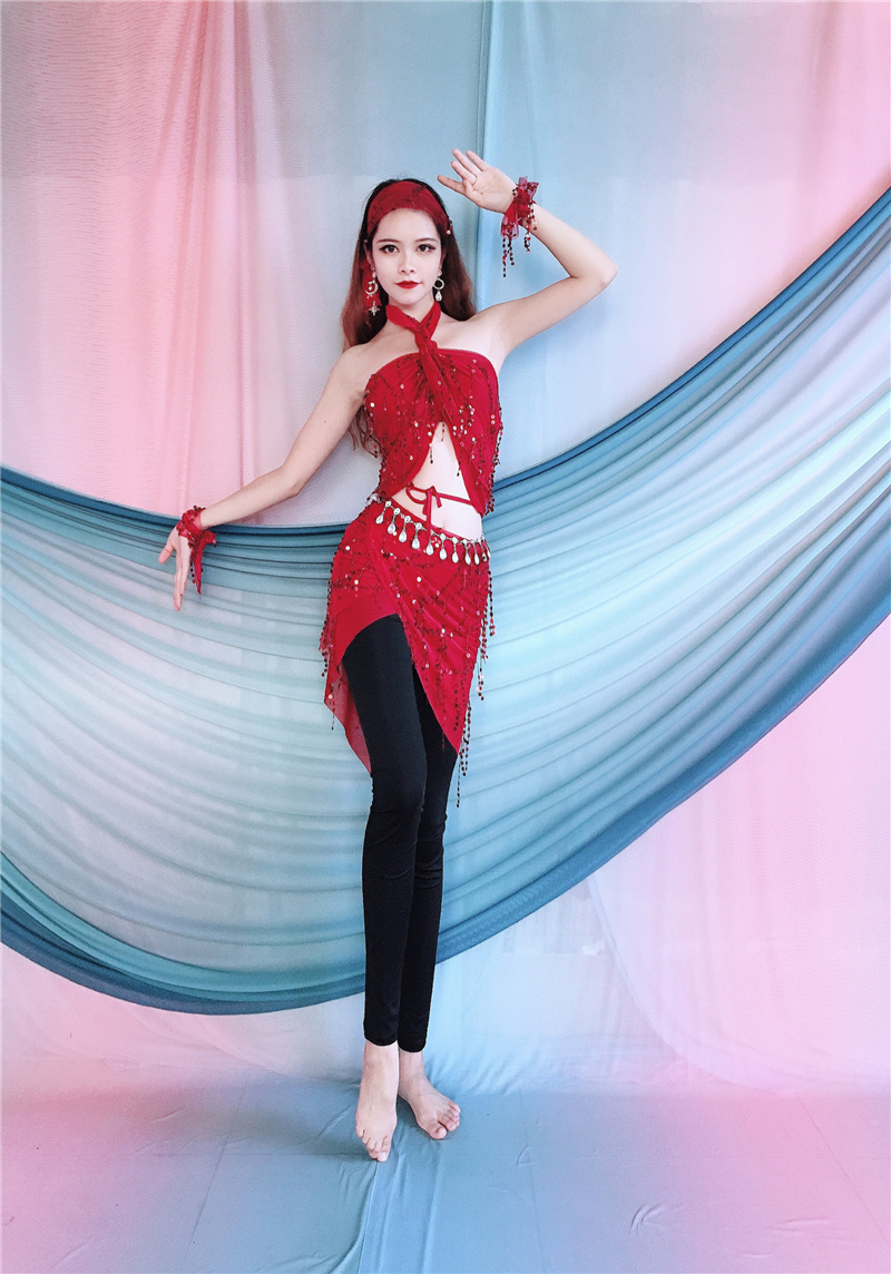 Baiya Qianhui Dance Dance Practice Clothing 2024 Новые бусины Top, Hipline Dance Performance Net Red Performance Clothing
