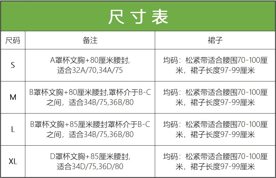 - Including: bra+belt+skirt (total:3pcs)