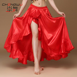 Танцевальный танец живота показывает одежду под односторонним двусторонним расколом на нижней части тела длинная юбка