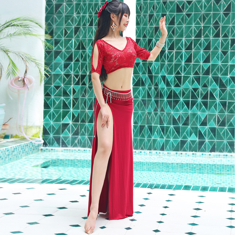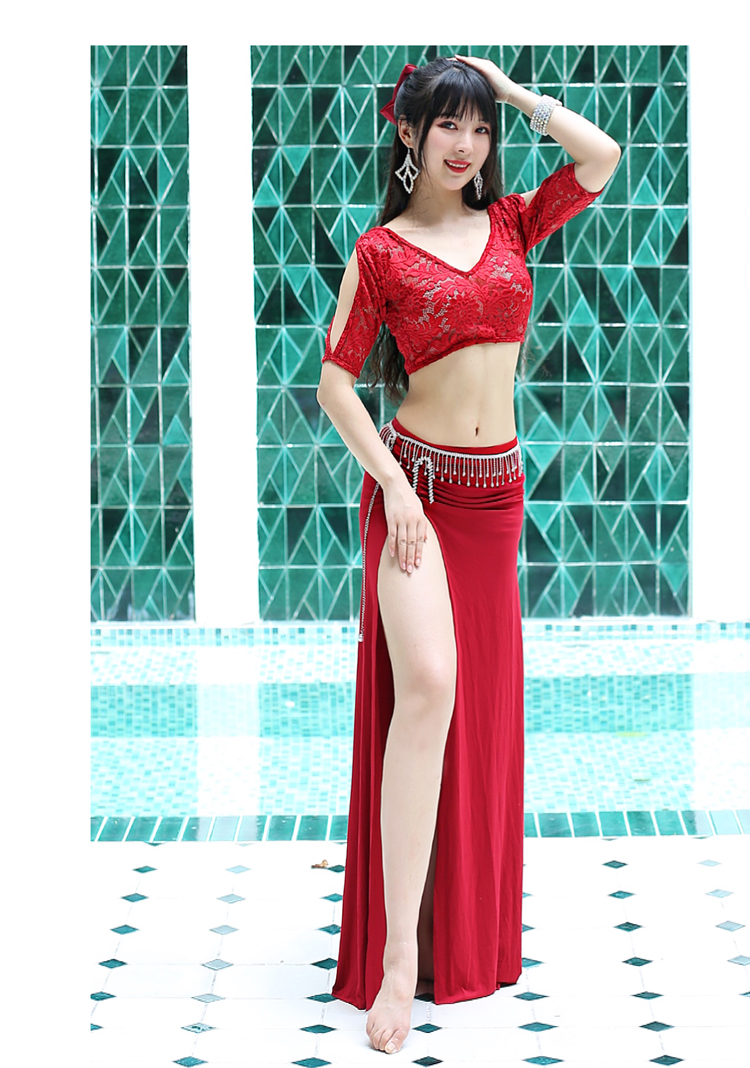 - Бордовая кружевная шелковая юбка