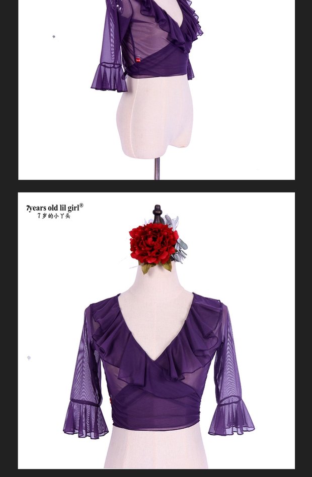 Танцевальный сервис горячий -вывитый танец живота Новая тайваньская водяная пряжа фламенко роговая рукав топ дизайн бренда bxx20