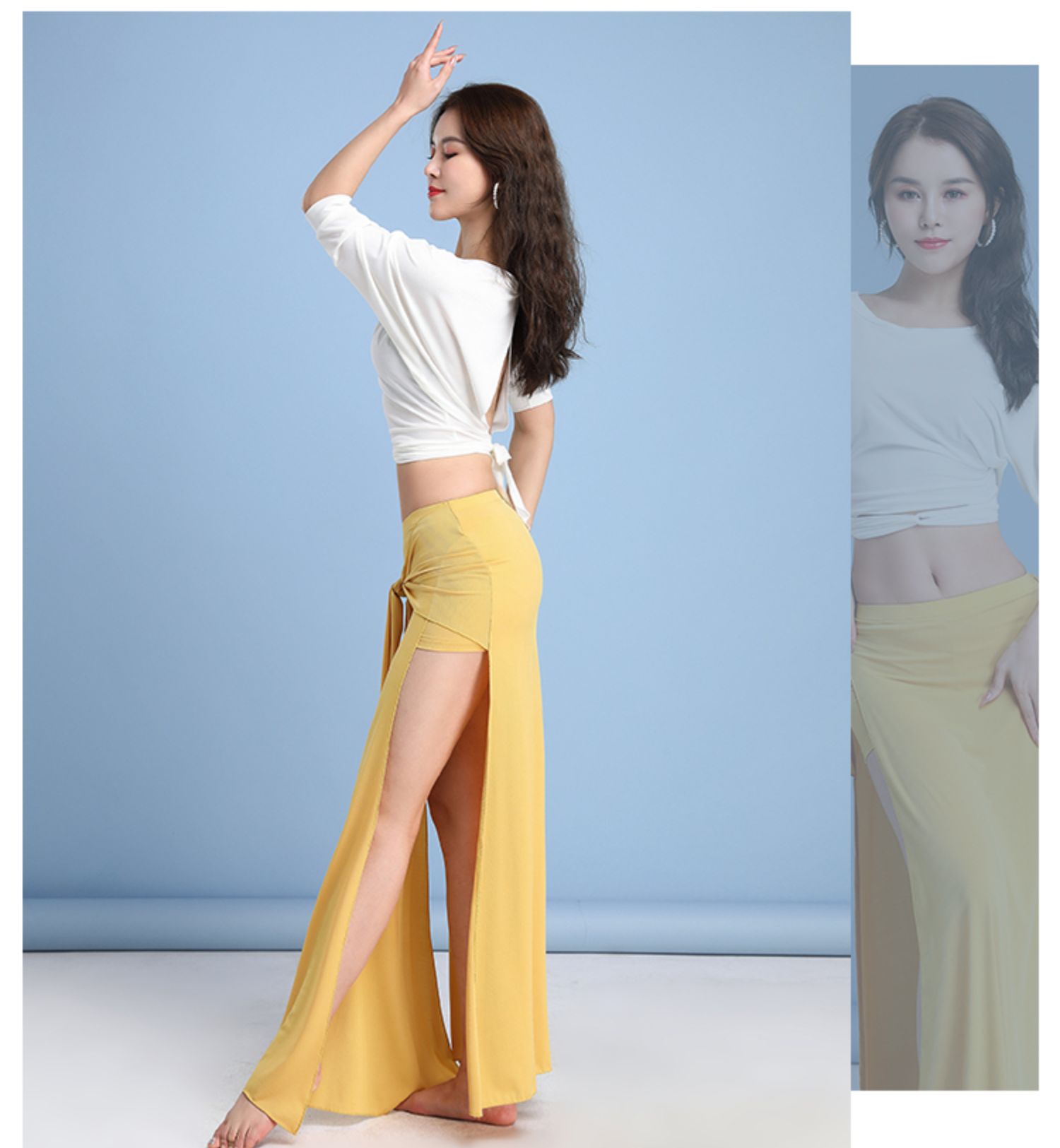 - Чисто белая+лимонная желтая юбка (отправляйте те же брюки для защиты цвета)