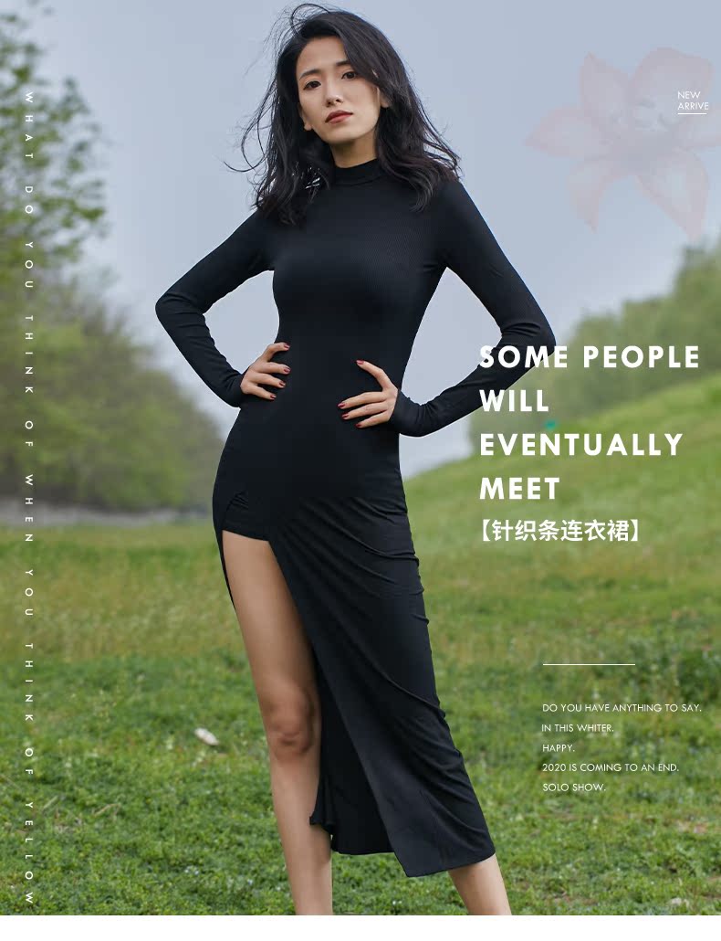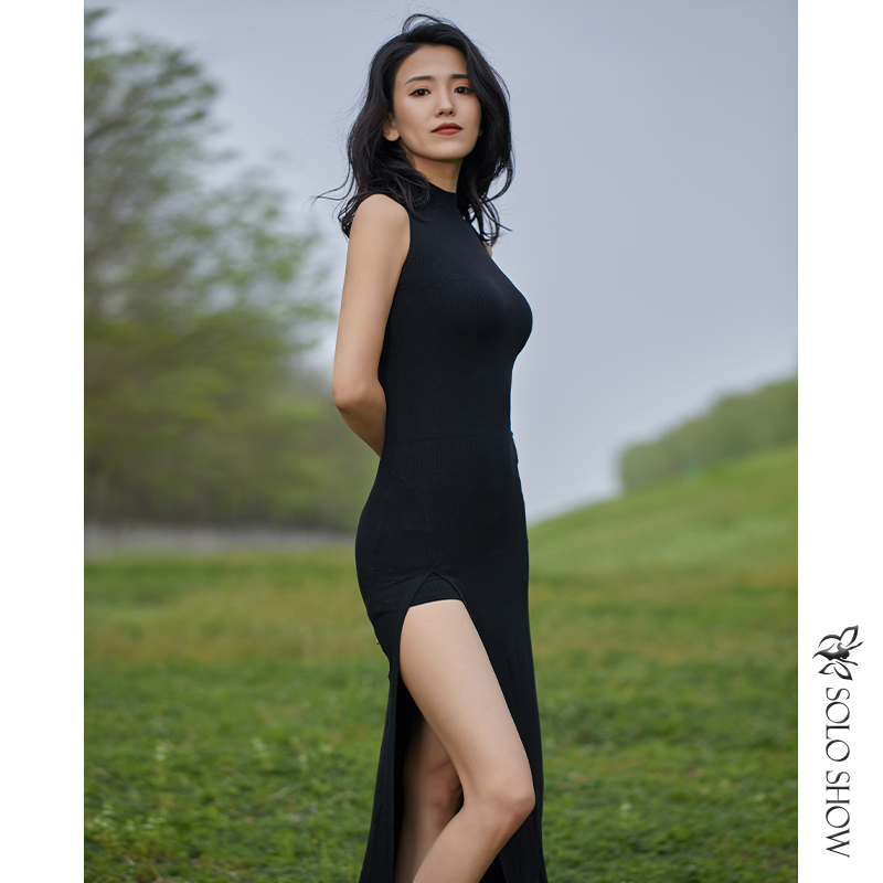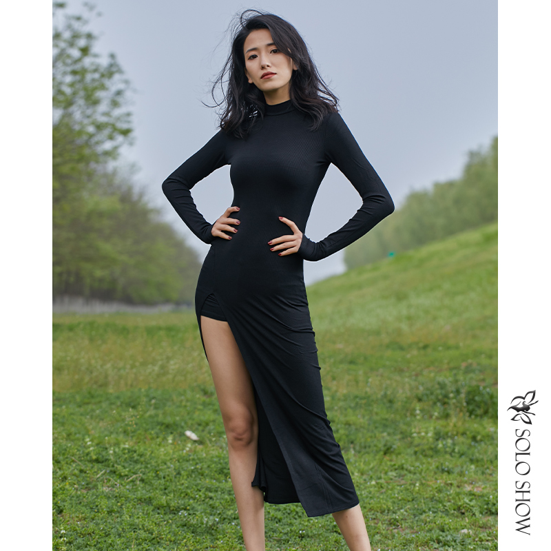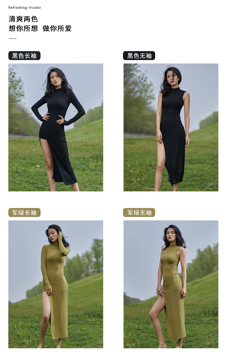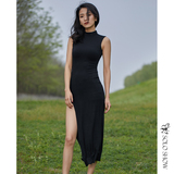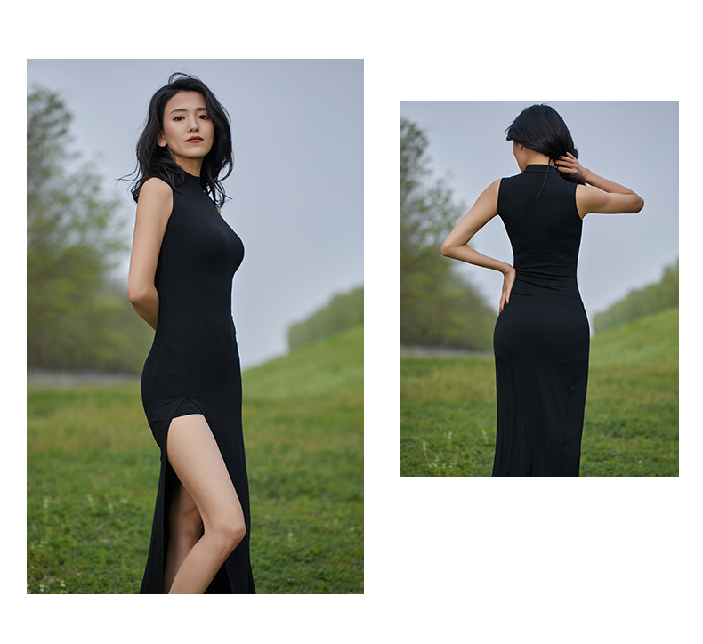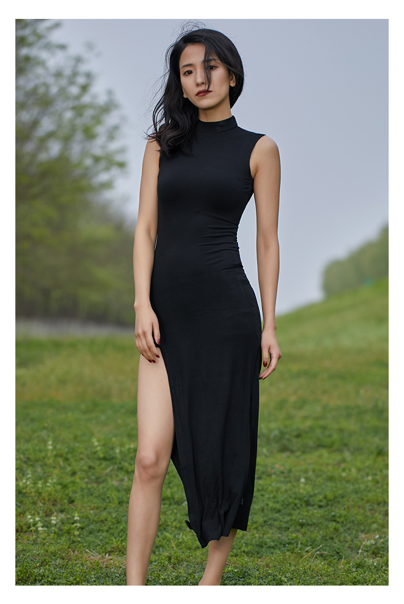 华丽独秀 Черная спортивная одежда без рукавов, современное платье, городской стиль, с рукавом