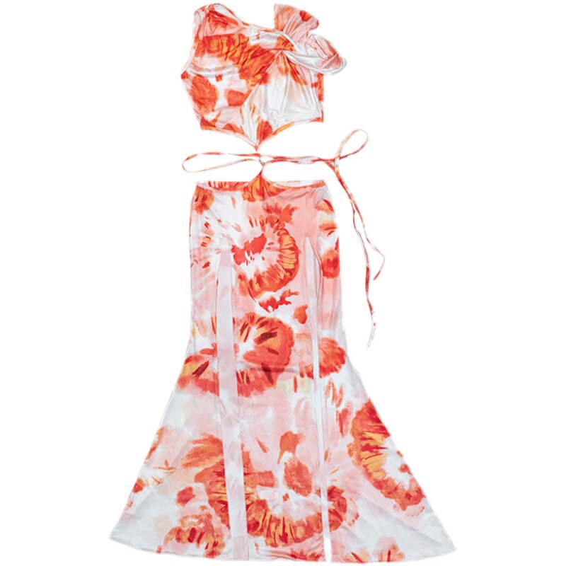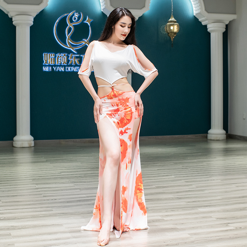 Новая одежда богини 2024 Новая танцевальная тренировка для живота сексуальная выставленная верхняя часть плеча и нижняя часть двухквартирной юбки B110