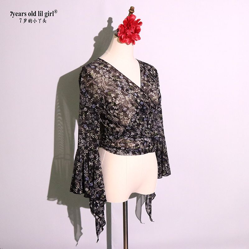Танцевальная служба горячая -сцена на животе сцены бухты, пряжа вода, заложенная топ -рукав в рукаве, дизайн бренда Byy109