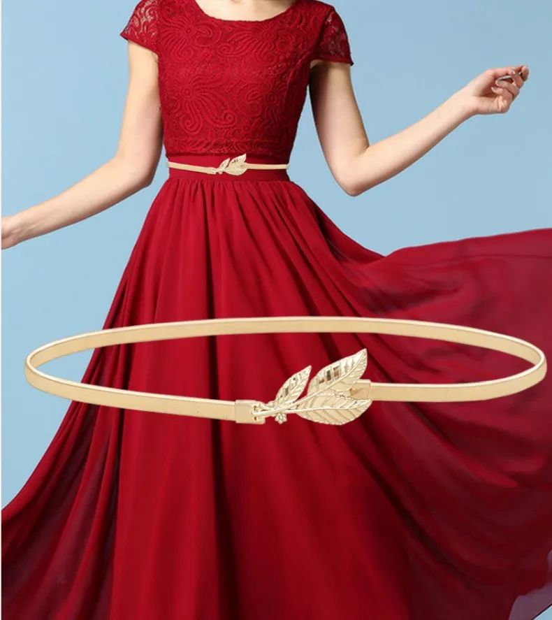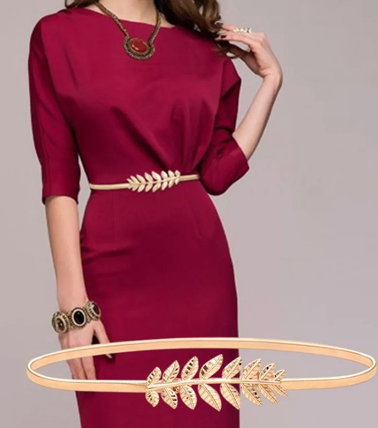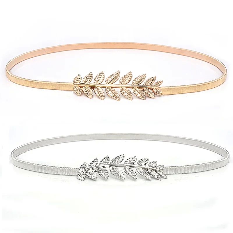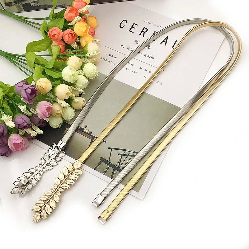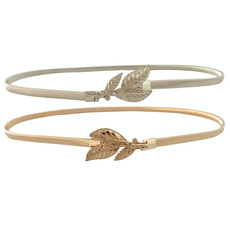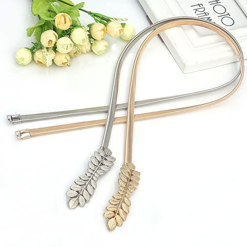 Цветочные листья металлические пряжки ремень для женщин, дамы, эластичный вай