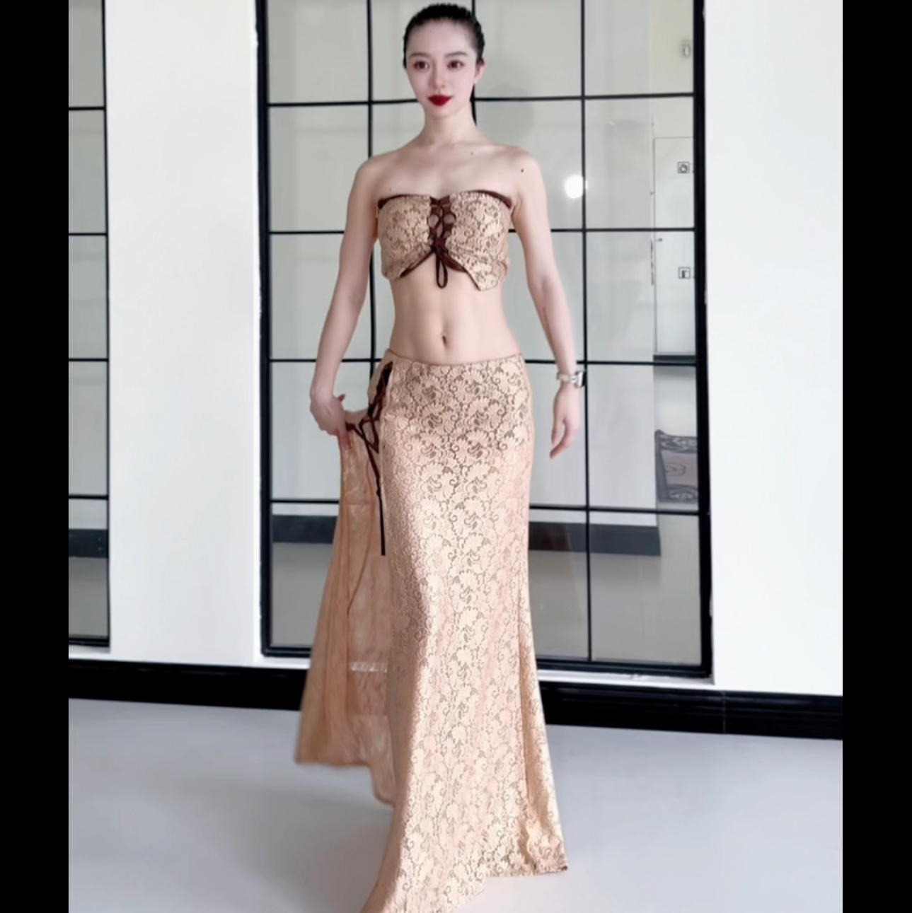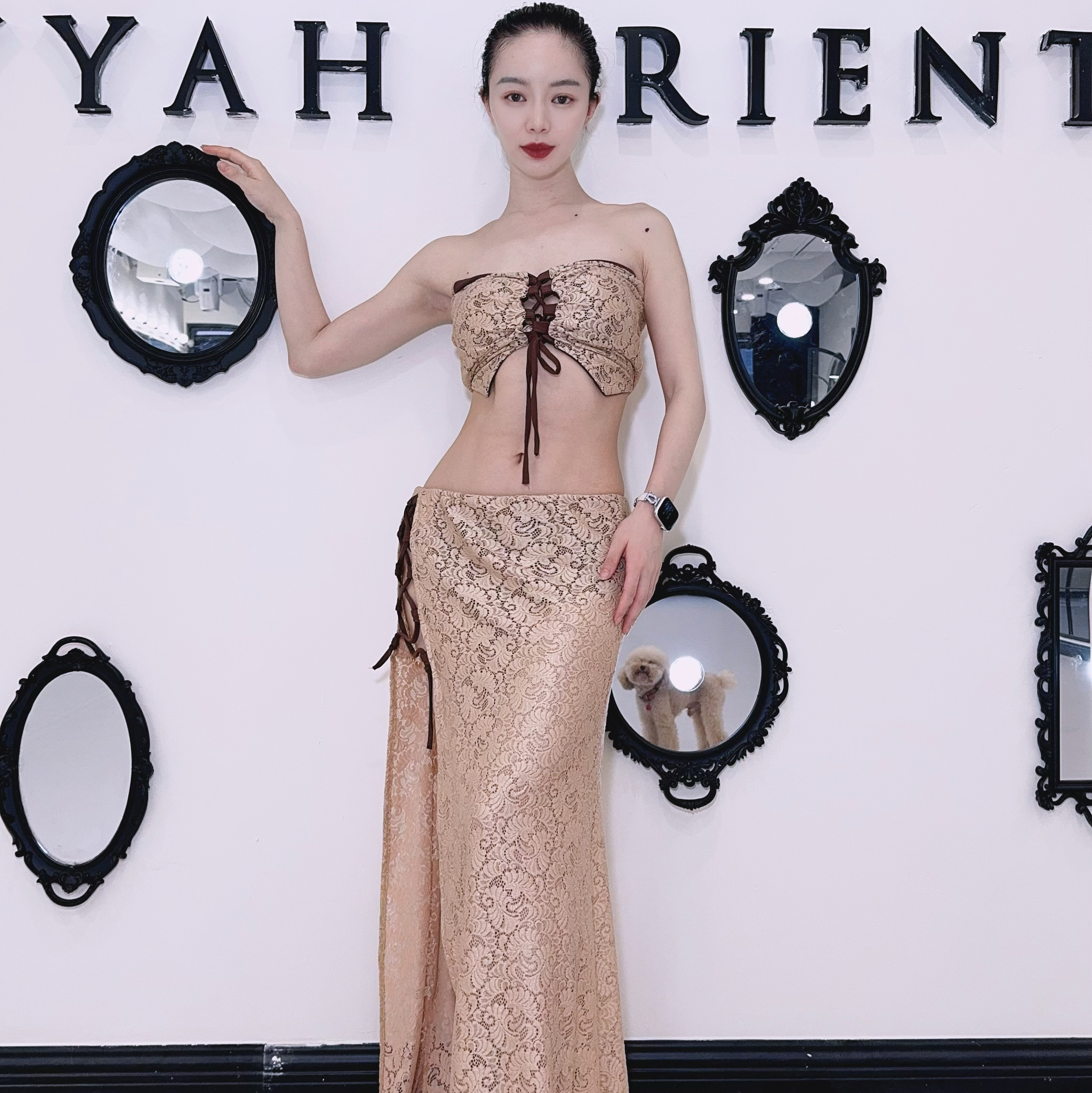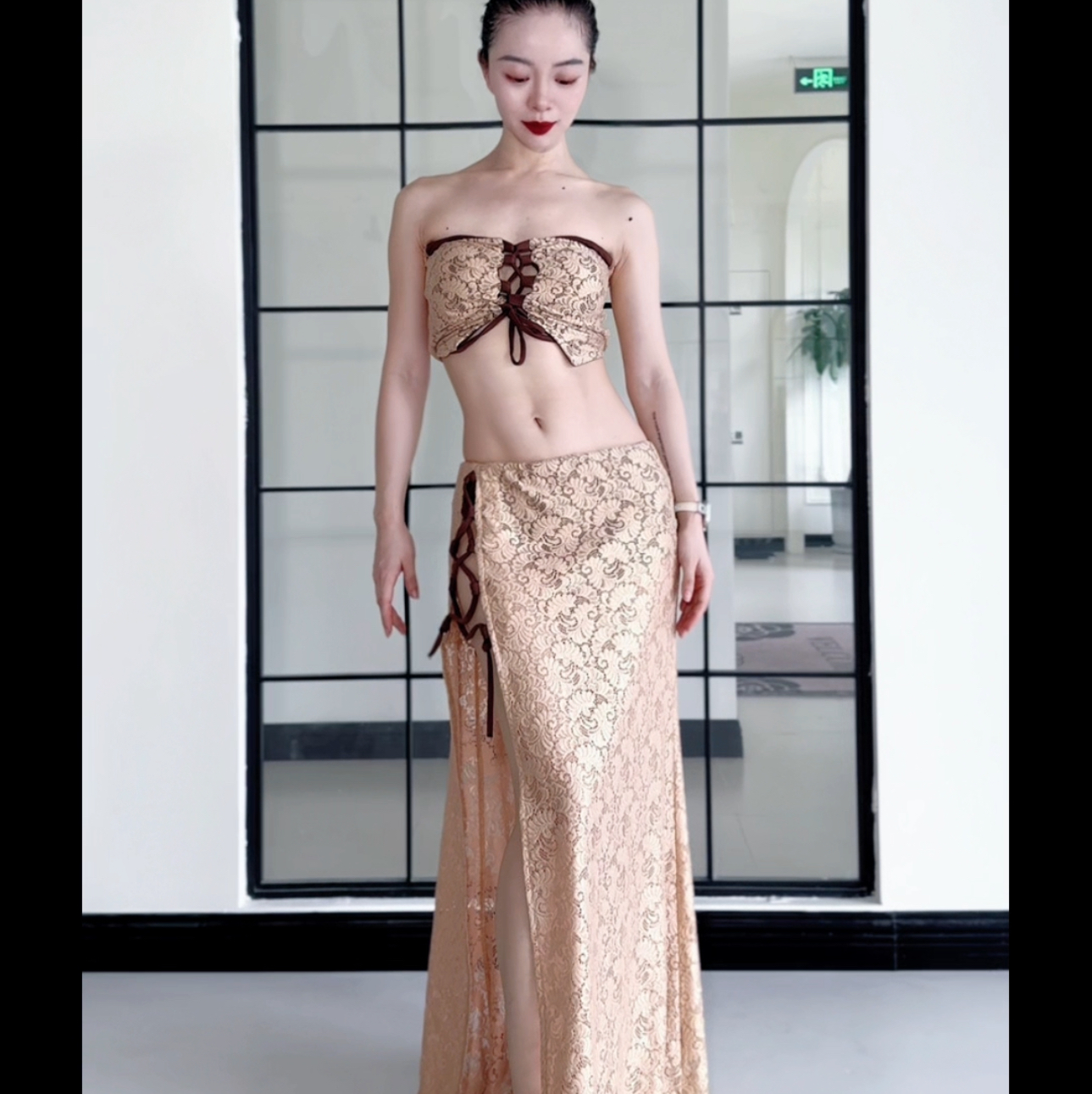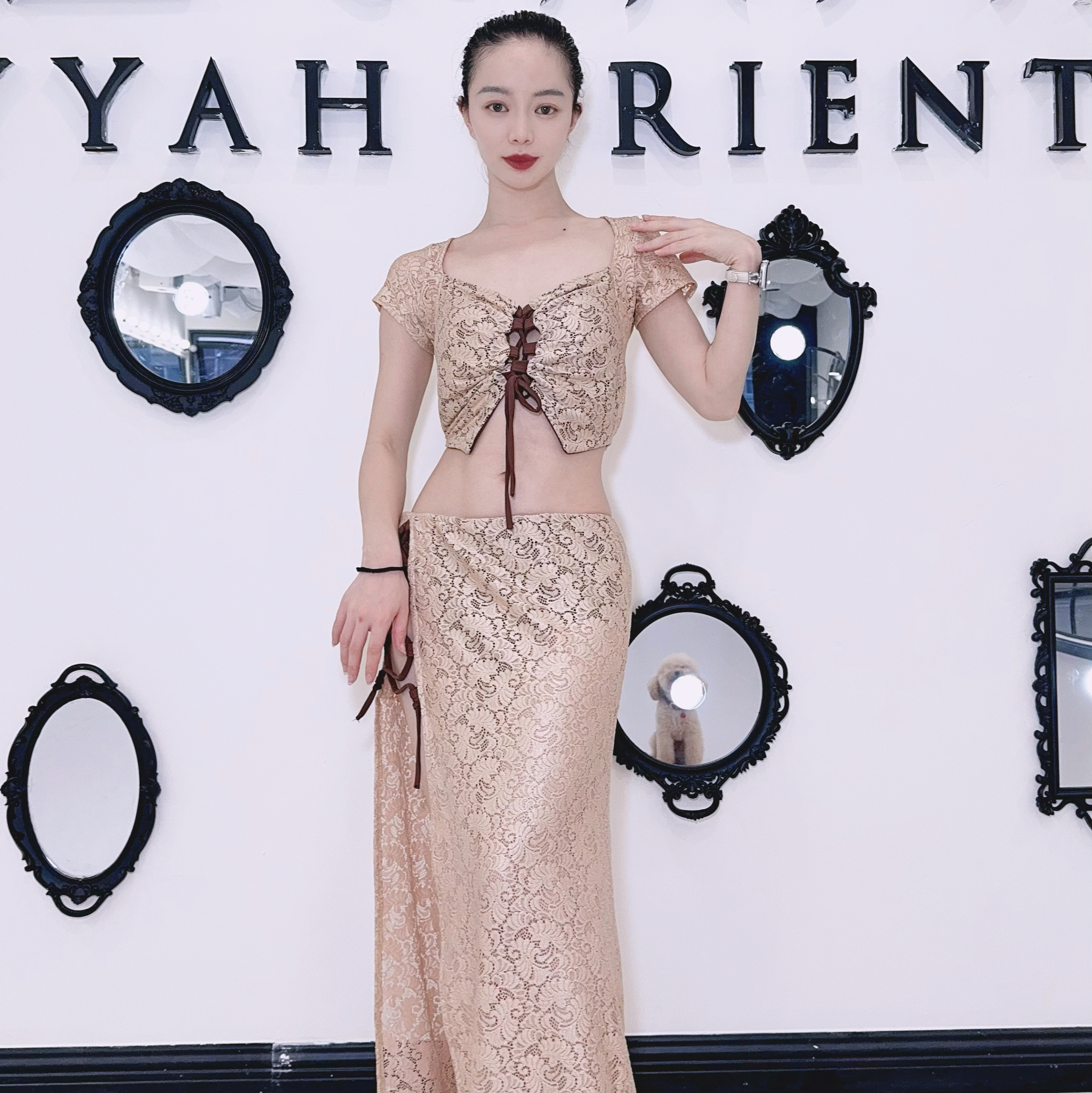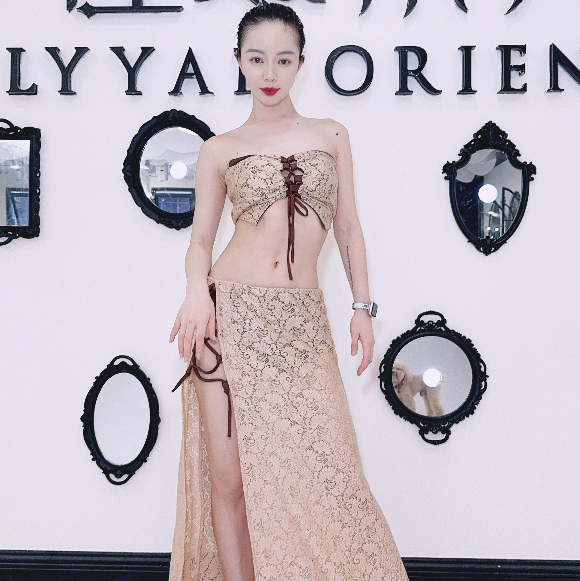 Zuo Han Menglu Сексуальный кружевной топ для восточных танцев, юбка с разрезом, одежда для танца живота в том же стиле, что и Нин Цзо Хан