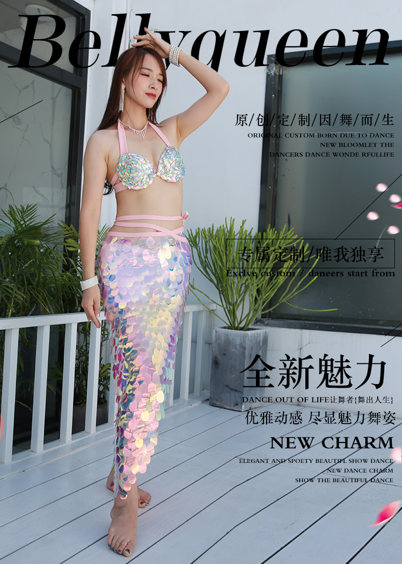Одежда для практики танца живота, новинка 2025 года, лето и осень, новый пояс для восточного танца, поясная цепочка, длинная юбка русалки, набедренный шарф