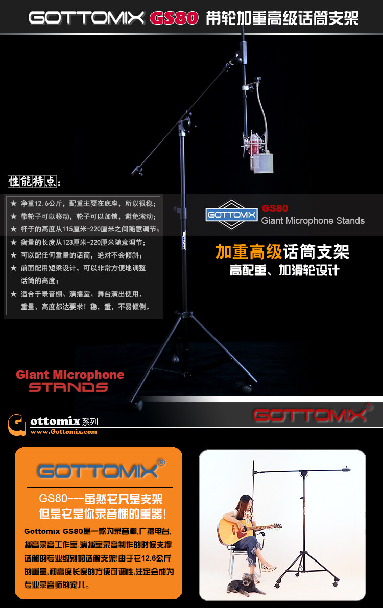 Gottomix GS80 Advanced Hears для увеличения поддержки микрофона/U87/Rode K2