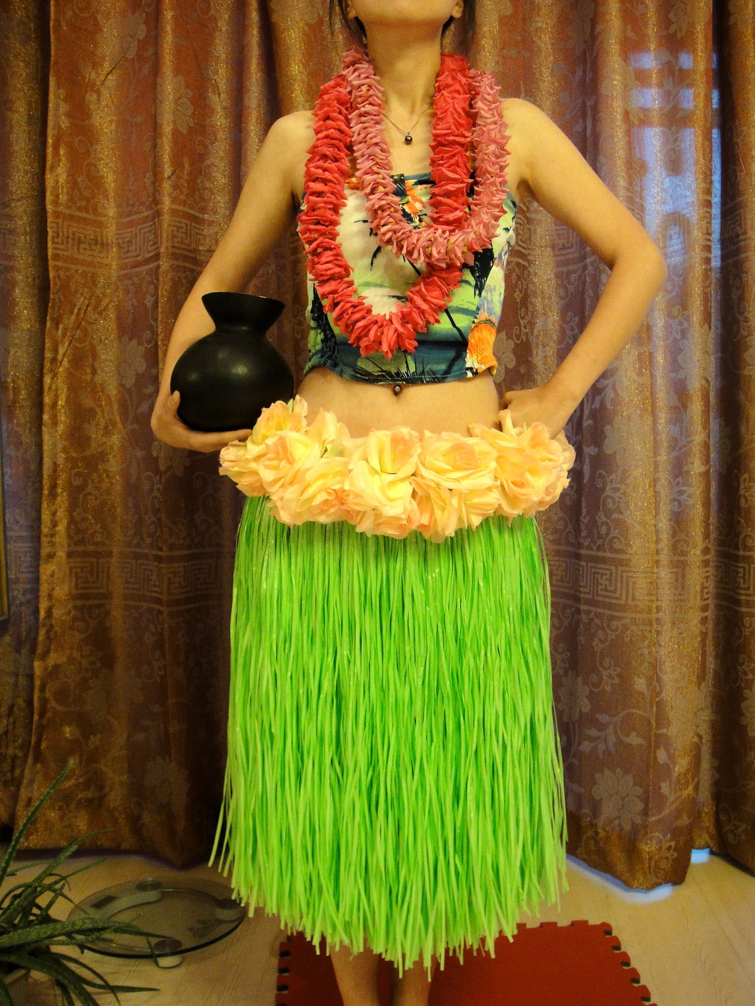 Гавайская травяная юбка танцевальная раб Lulu Цветочный кольцо кольцо талии, Daxi Grous Grass Dance Performance Set Accessories