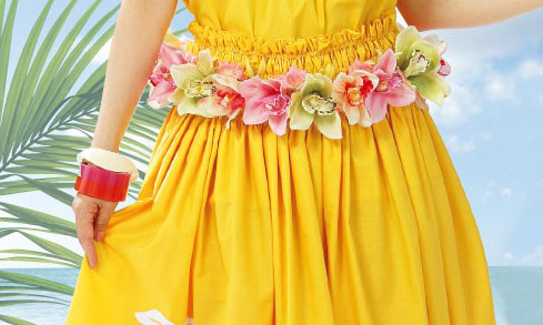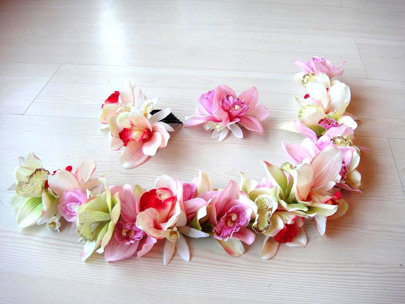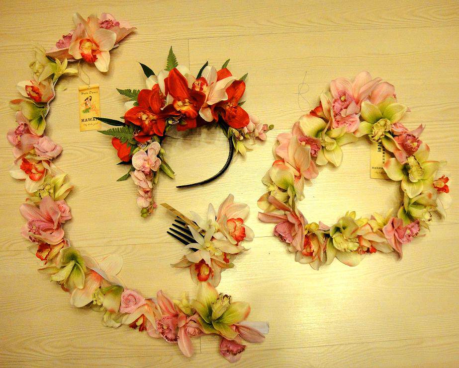 Гавайская травяная юбка танцующая рабыня Лулу Шихуо Кольцо, красивое, как цветок, отредактированный цветами, только что выбранные с острова!(Это цветочное кольцо носит на талии)