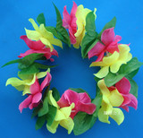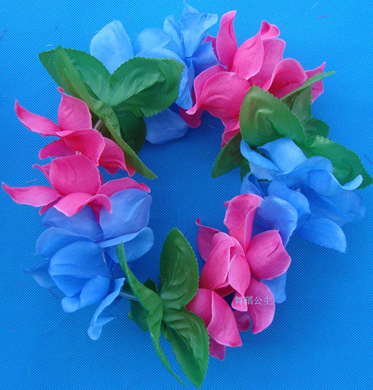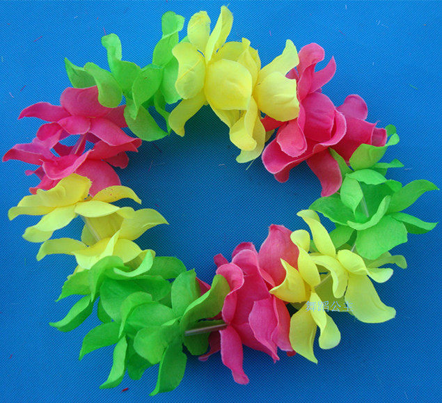 Оптовая голова кольца танец с упругим цветочным кольцом головы украшения и цветочные батончики на гавайской траве танцуют с цветочным кольцом, надетым на голове