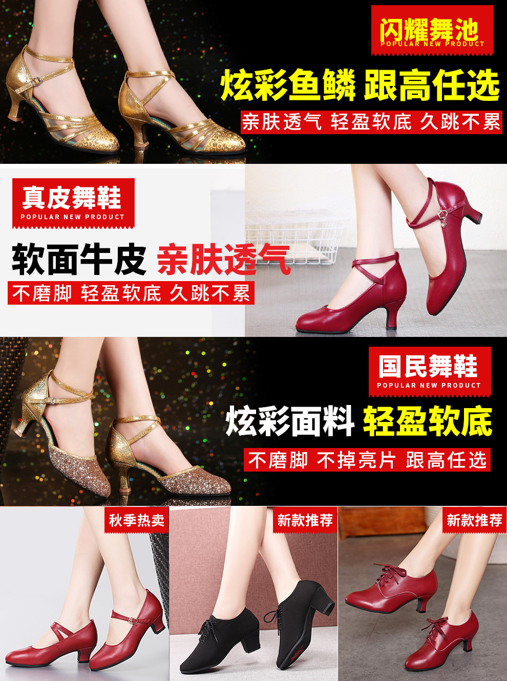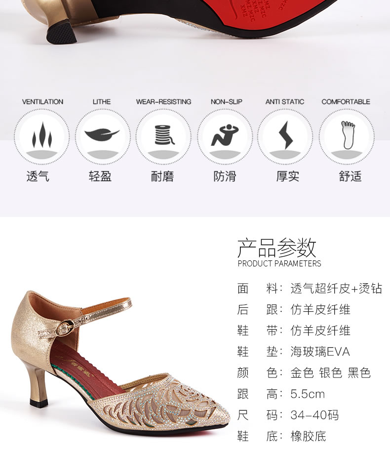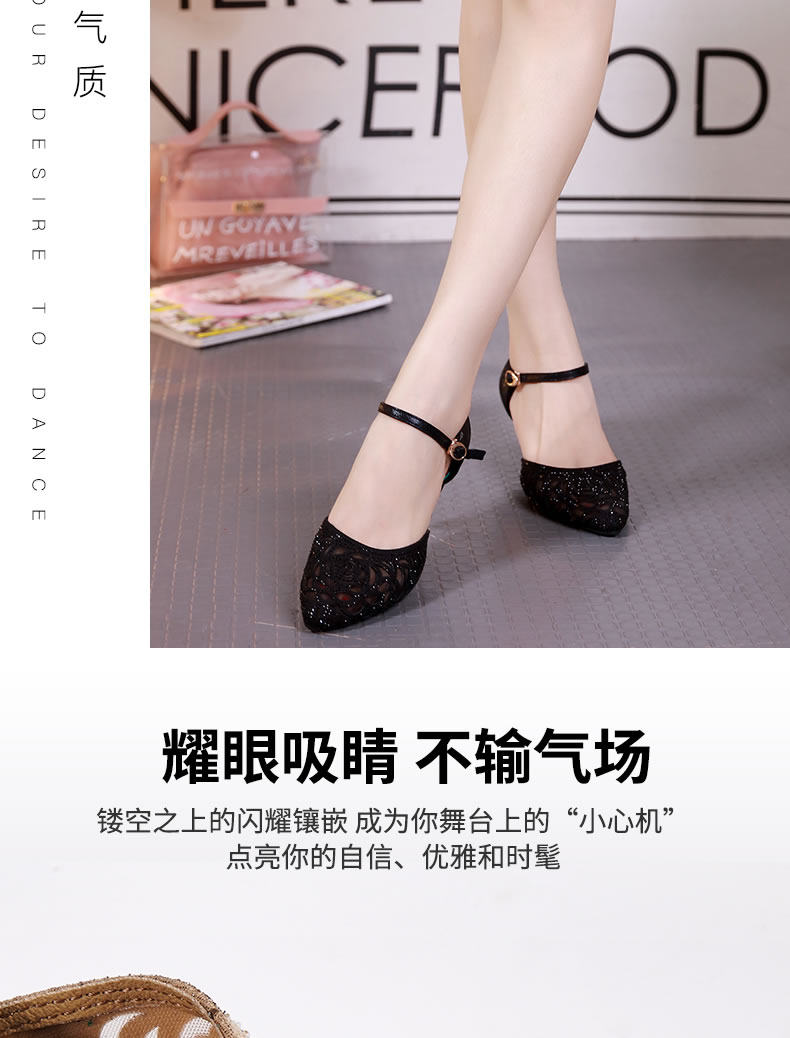 Латинская танцевальная обувь женщина взрослая Ся Чжунчжонг Высокая новая танцевальная туфли мягкая подошва пятки