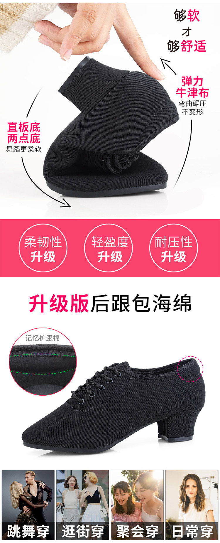 Черная танцующая обувь, ткань оксфорд, мягкая подошва