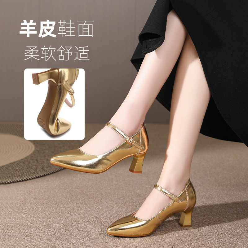 Кожаная золотая латинская танцевальная обувь 2024 Новая овчина стандартная танцевальная обувь