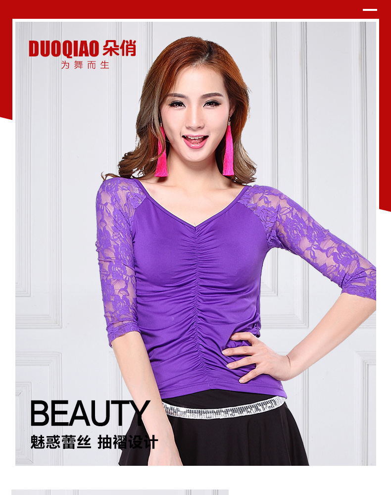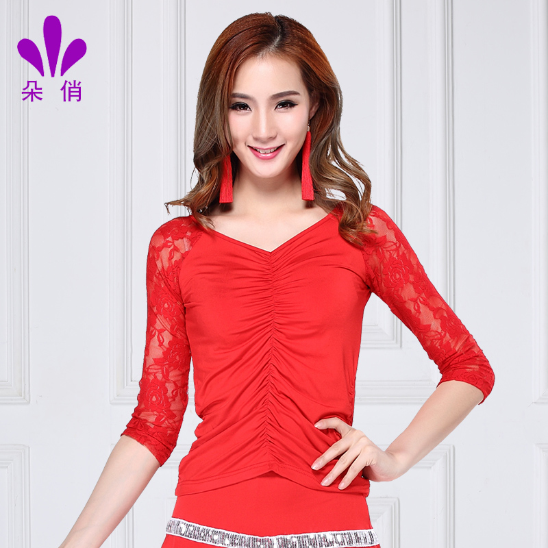 朵俏 Квадратный танцевальный костюм Топ 2020 Весна Новый Танцевальный костюм в середине рукава взрослые женщины Латинский танец костюм большой размер