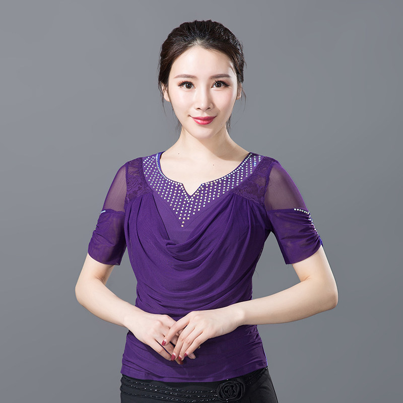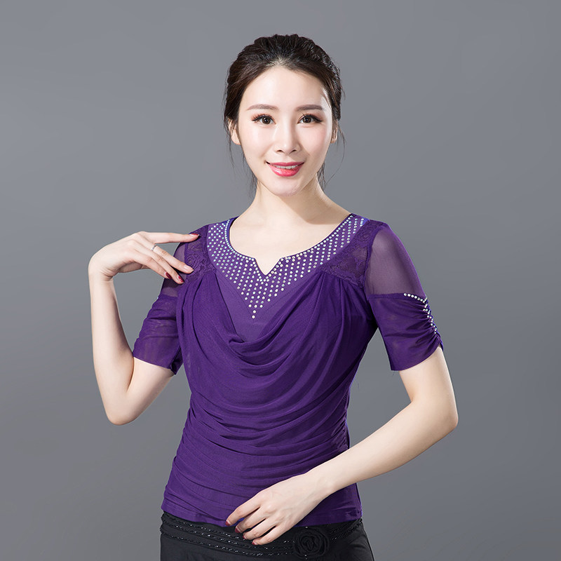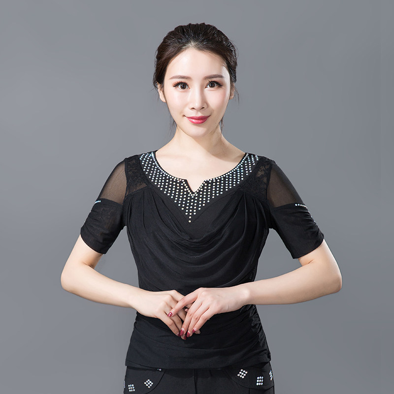 Танцующая одежда Новая женская национальная стандартная танцевальная одежда для взрослых латиноамериканской танцевальной одежды современная танцевальная одежда квадратная танцевальная рубашка короткие рукава короткие рукава