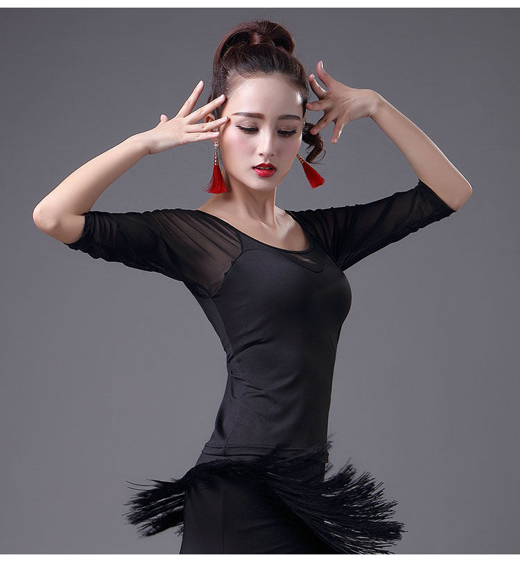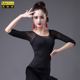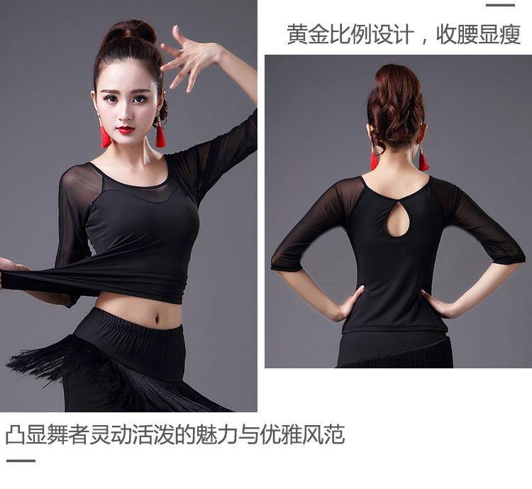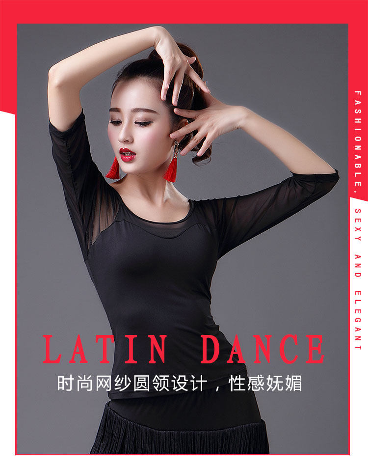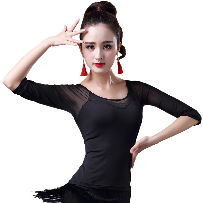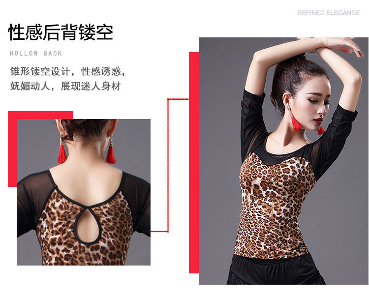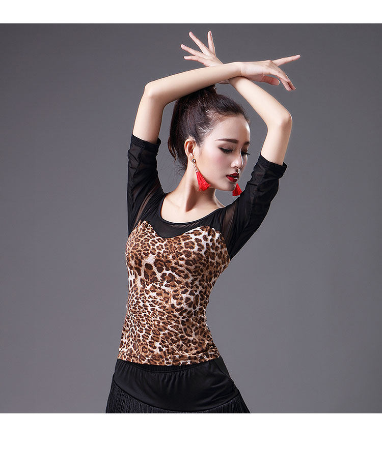2023 Новый латинский танцевальный топ для женщин сетки среднего и короткого рукава леопардового принта весна танец современный национальный стандартный танец для взрослых одежда