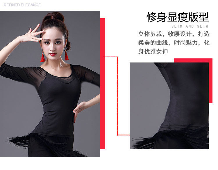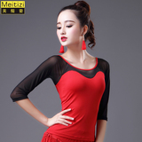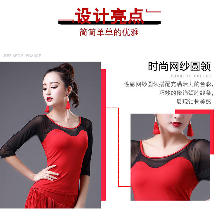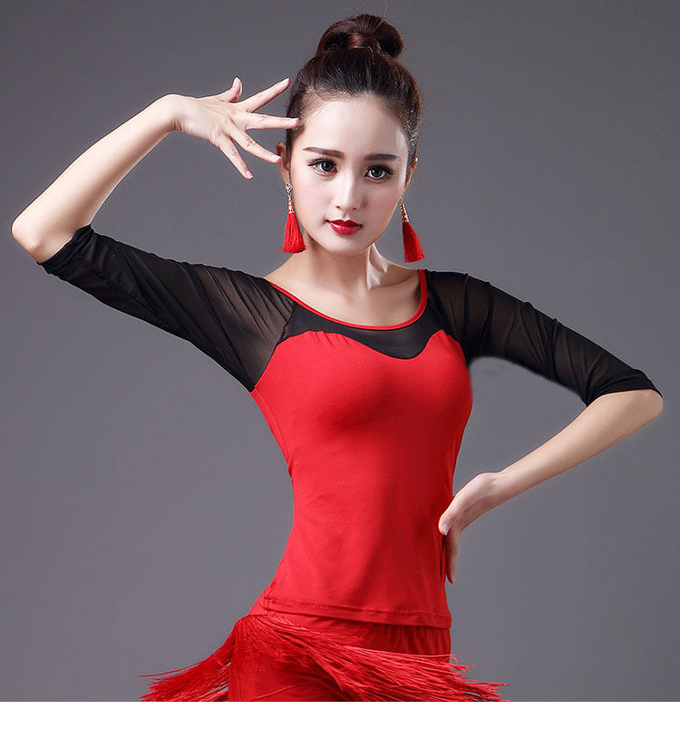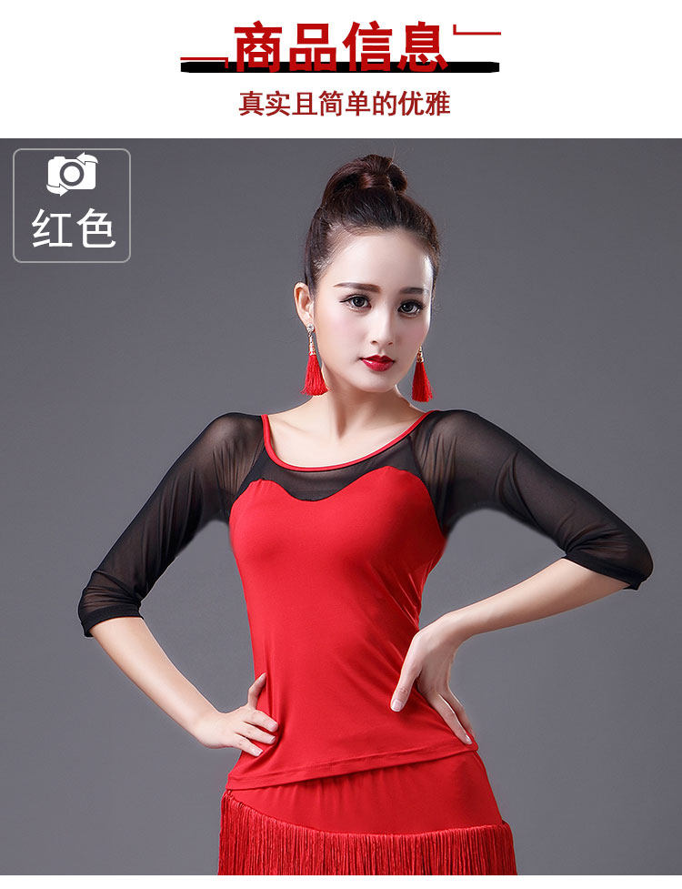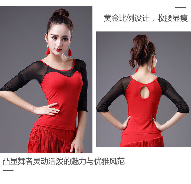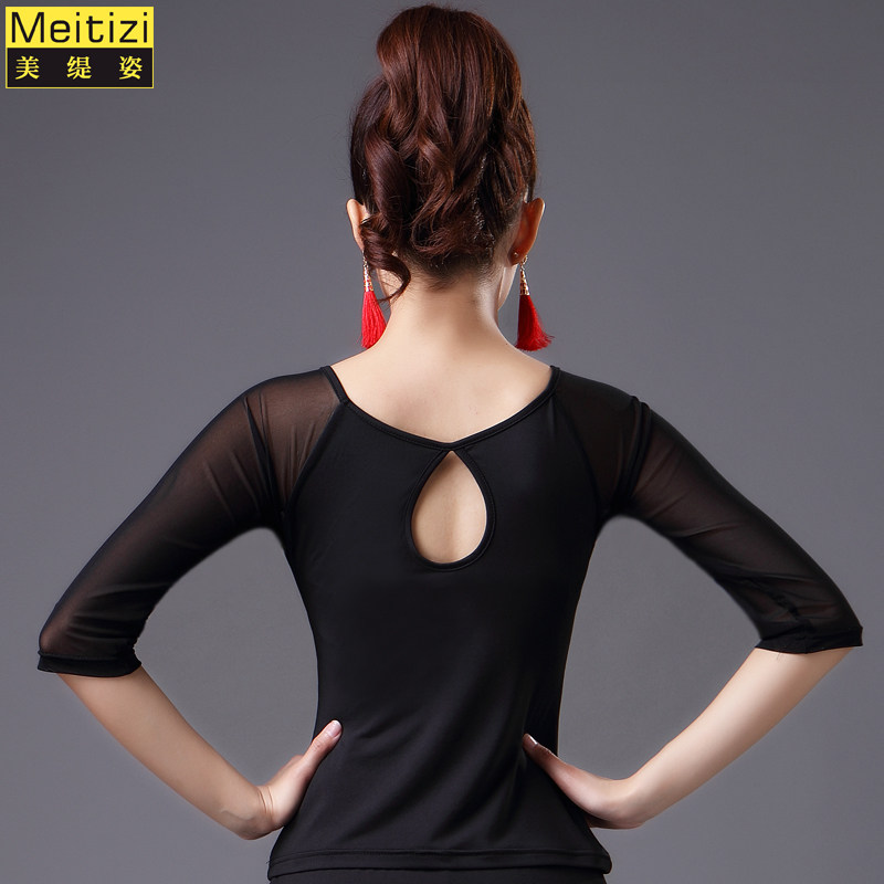 2023 Новый латинский танцевальный топ для женщин сетки среднего и короткого рукава леопардового принта весна танец современный национальный стандартный танец для взрослых одежда