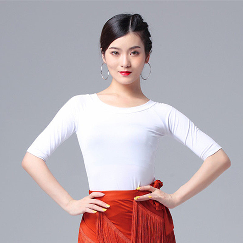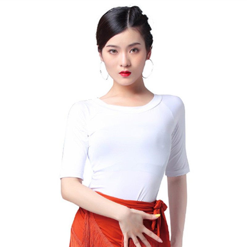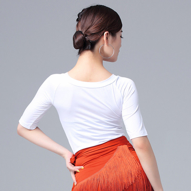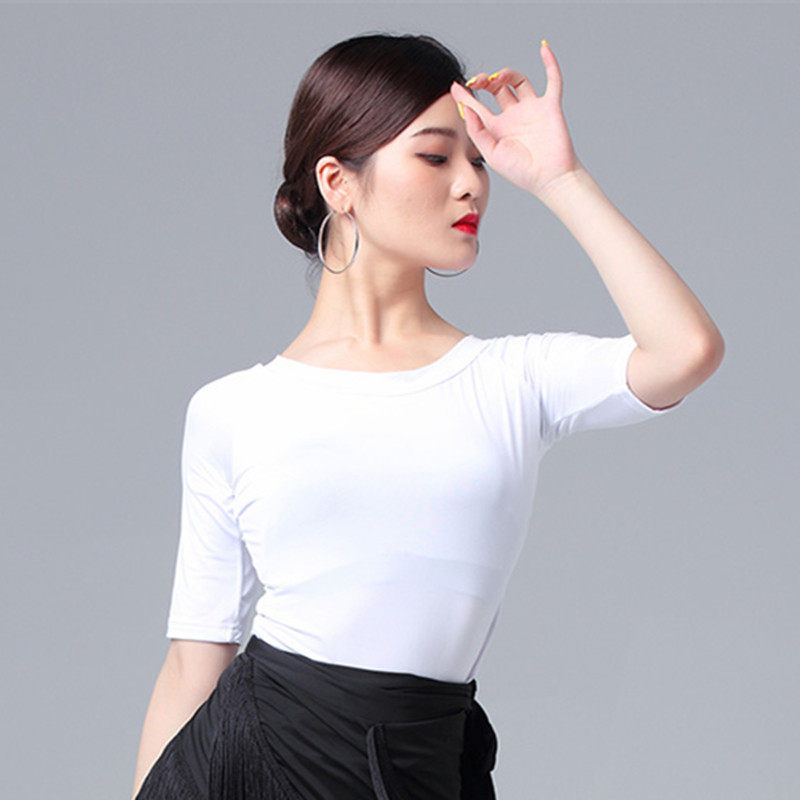 Белая футболка с круглым воротником для тренировок, танцующая спортивная одежда, облегающий крой