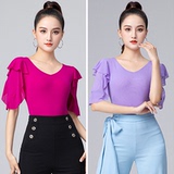 Латинский танец лотос листовый рукав топ женский современный танец новый танец танцор на танцевальной куртке моды