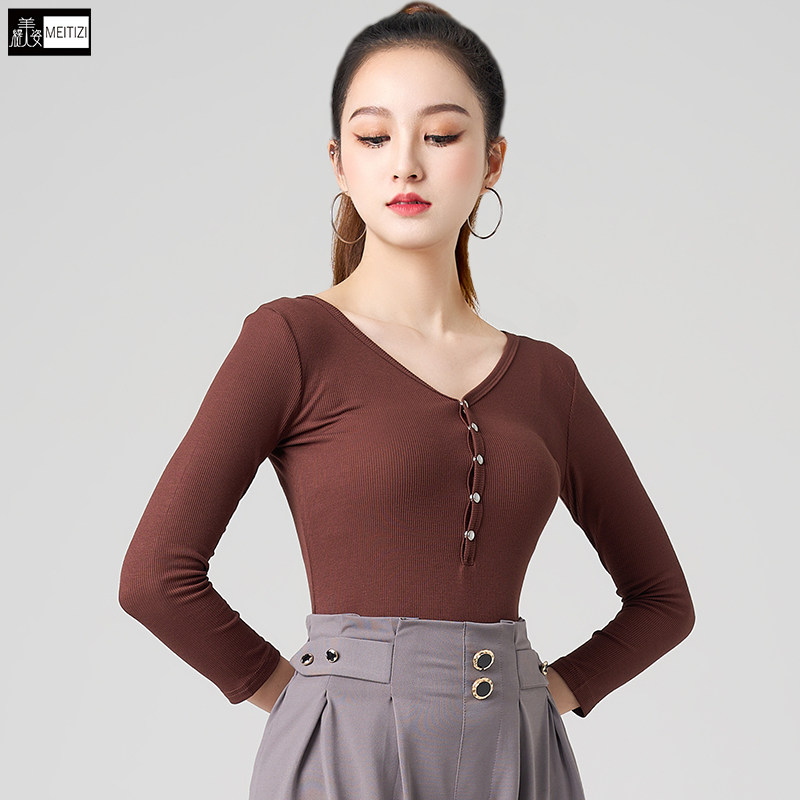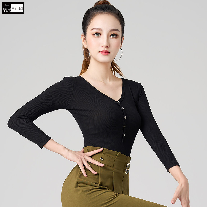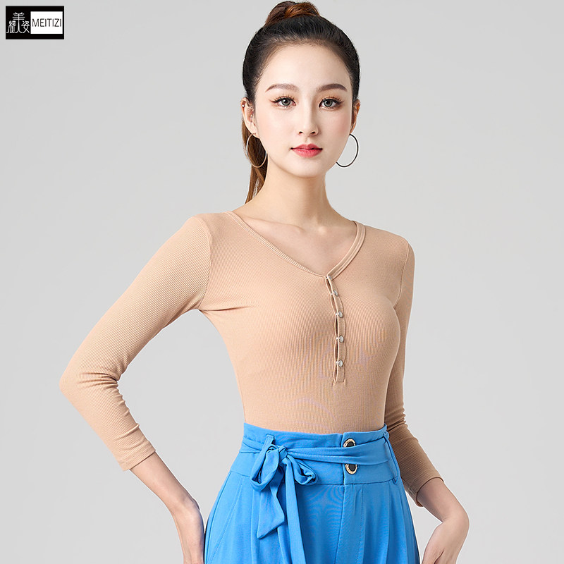 Латинская танцевальная одежда для женщин 2025 Новая одежда для танцев для взрослых для женщин V-образных выстрелов V-образных выстрелов. Национальная стандартная танцевальная одежда.