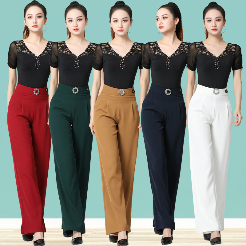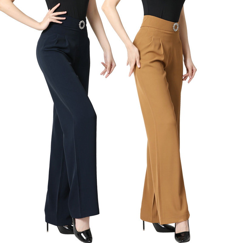 Эластичные штаны, свободный прямой крой, высокая талия