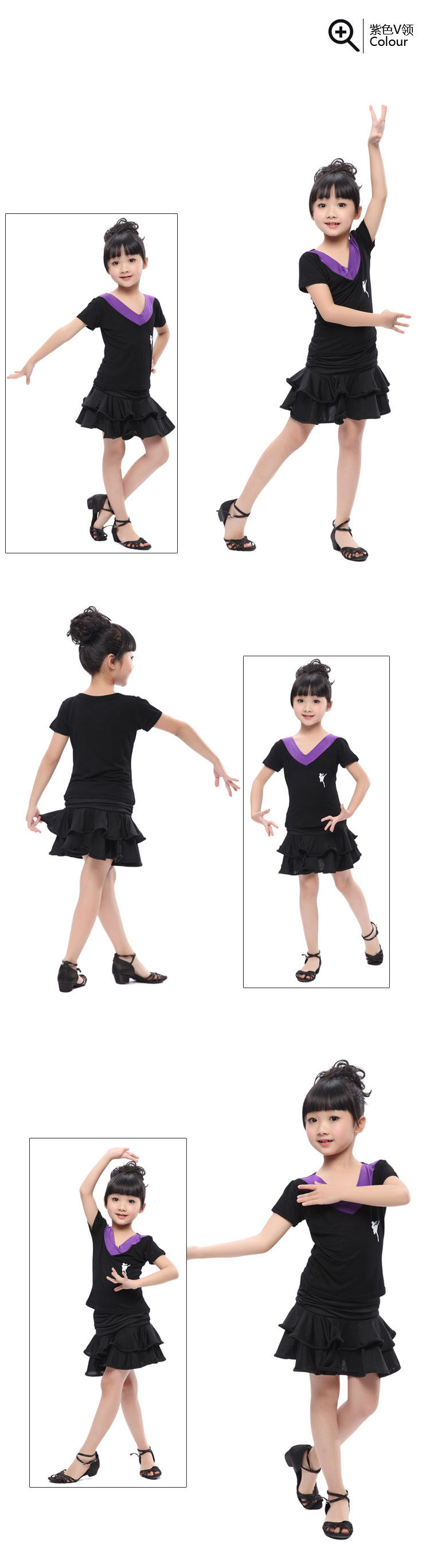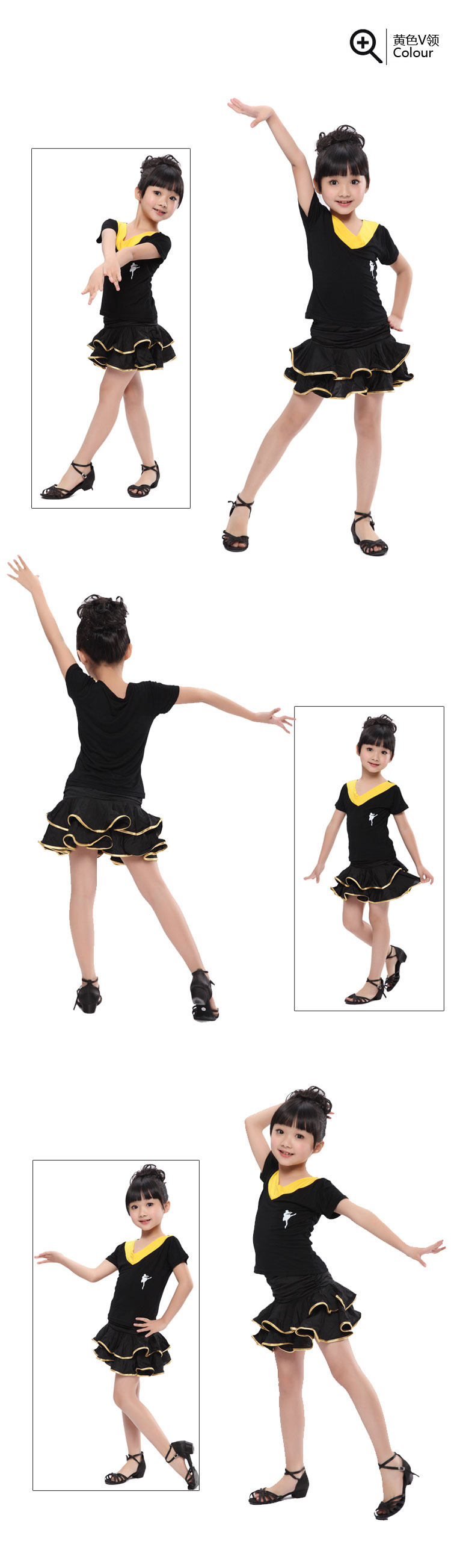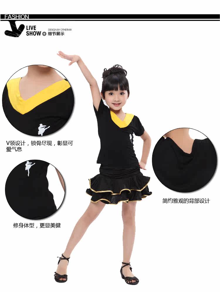 Детская латиноамериканская танцевальная одежда Flash Switzer Girl Short -Sleeved Top Saukry Series Children's Plaza Dance Новые модели