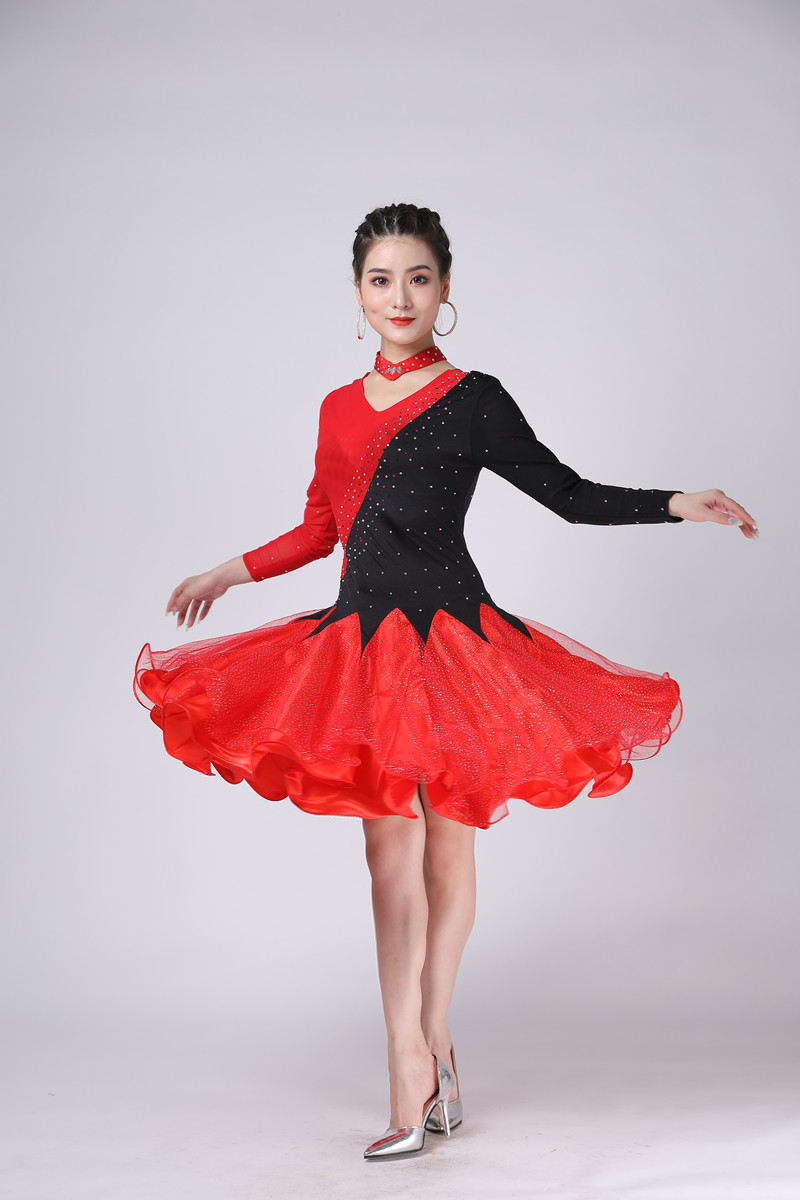 2019 Контрастные цвета Новые солдаты Трехэп -танцевальный сервис латинский танец платье Гиттаба квадратная танцевальная юбка