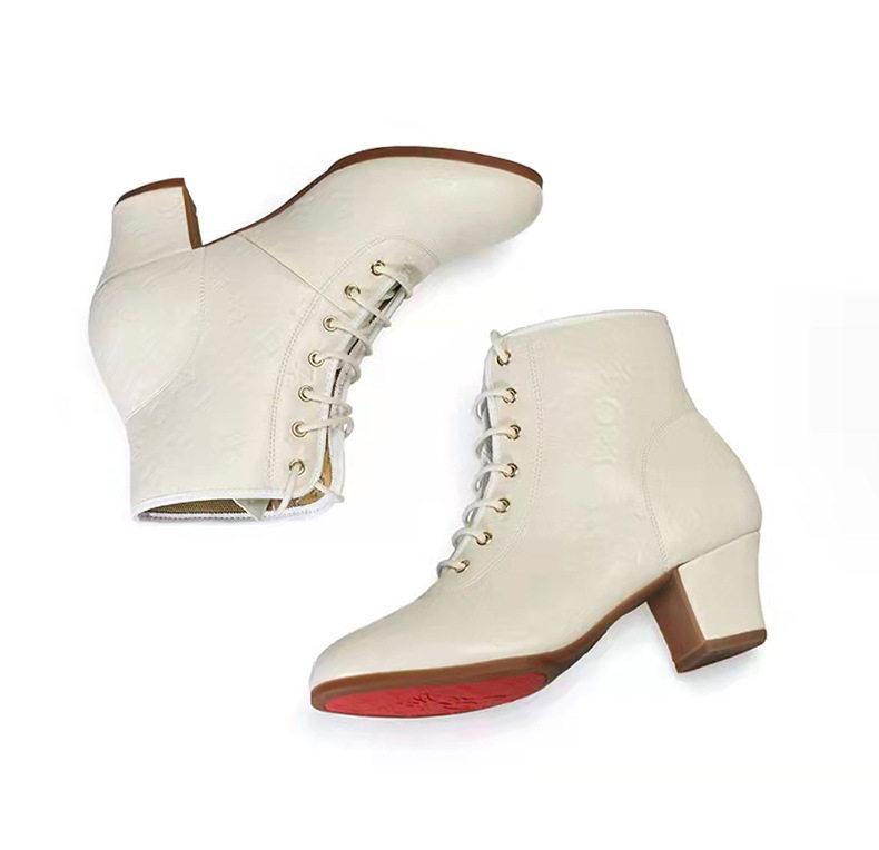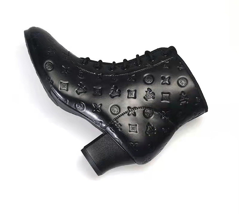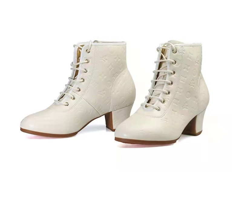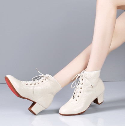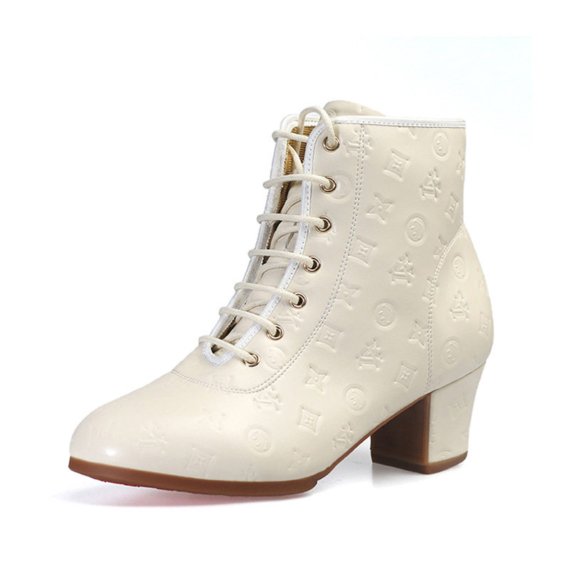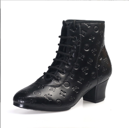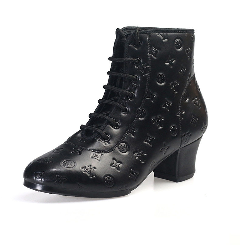 Новые туфли для кадриль для женщин, туфли на среднем высоком каблуке и высокие топы для людей среднего и пожилого возраста, мягкая подошва, тисненая кожа, туфли для матросских танцев, осень и зима.