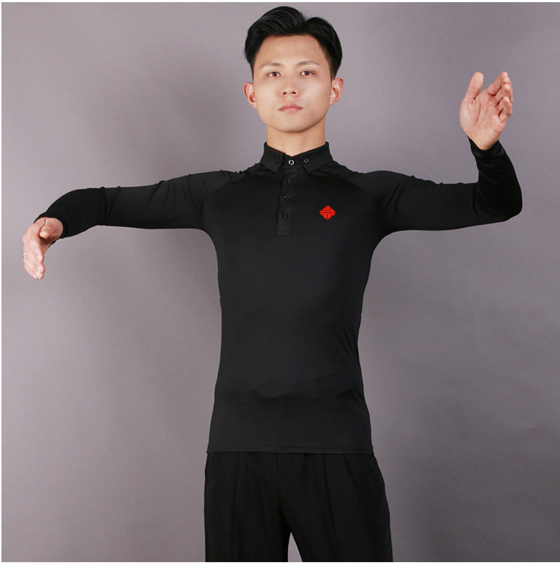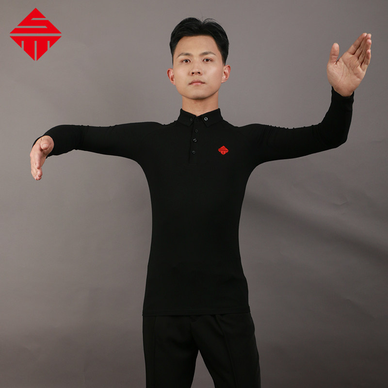 三木丹思 Современный танец взрослый мужчина поло в верхней части с длинным рукавом национальный стандартный танце