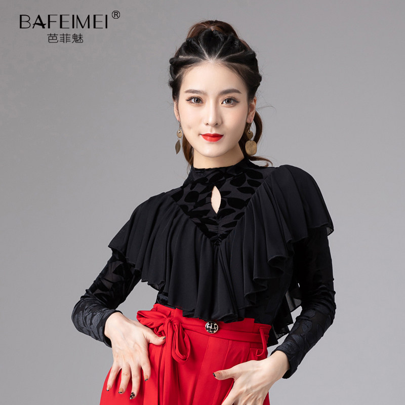Национальный стандартный танец современный танец женщина Новый доступный Wolitiz Dance Flower Plel of Velvet Long -Sleeved Dance