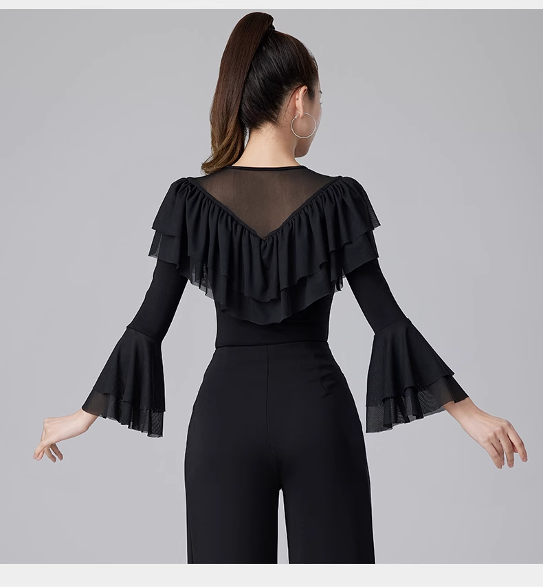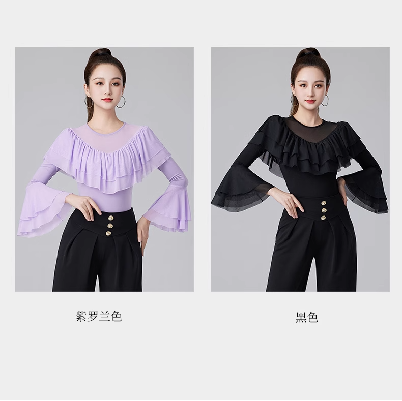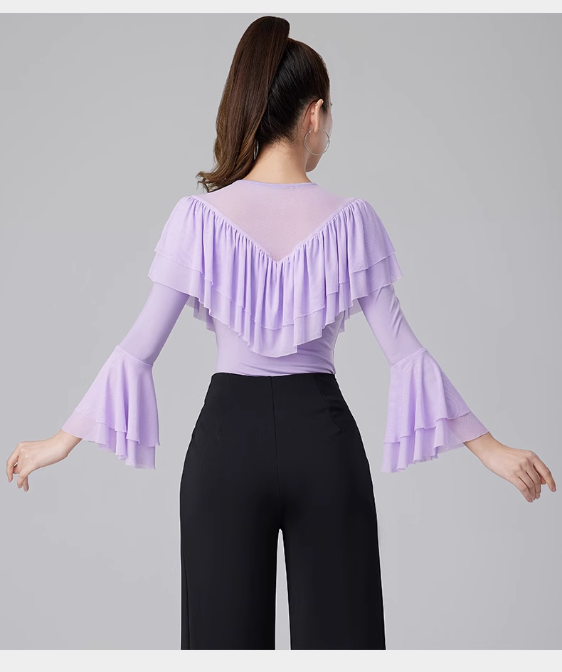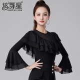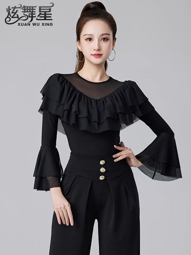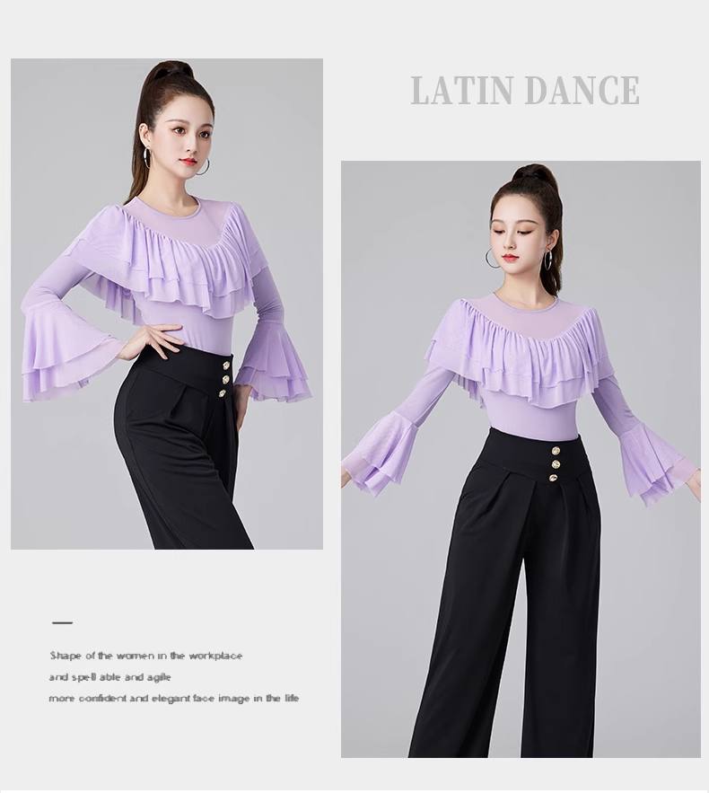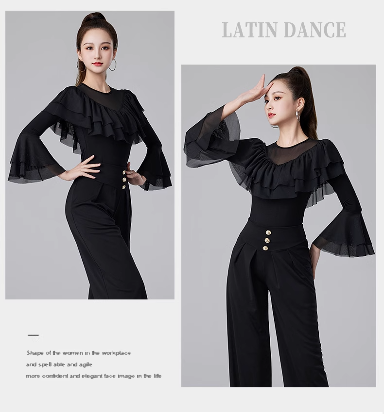 Современные танцевальные упражнения с высоким роговым рукавом -Лиф края латиноамериканская танцевальная рубашка танцевать танце