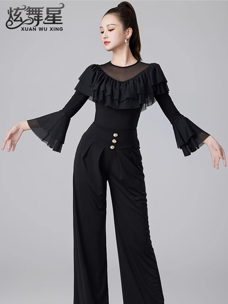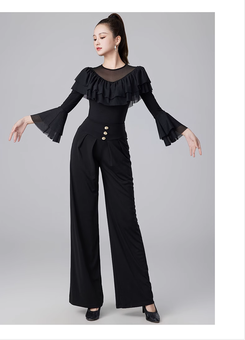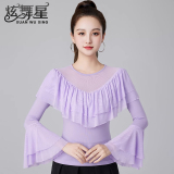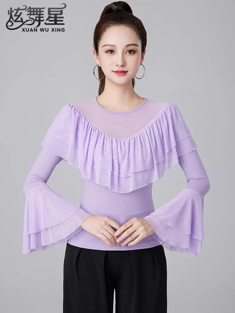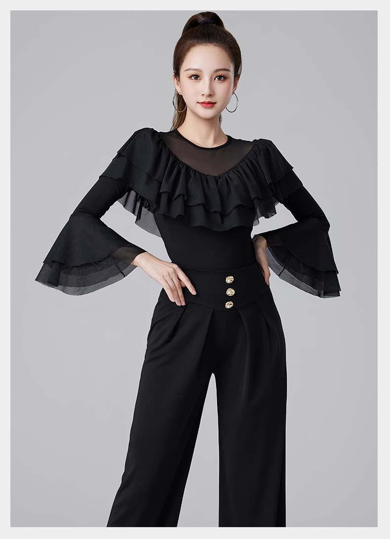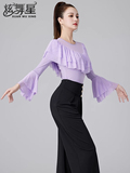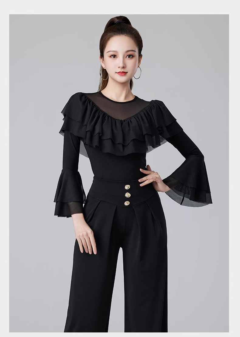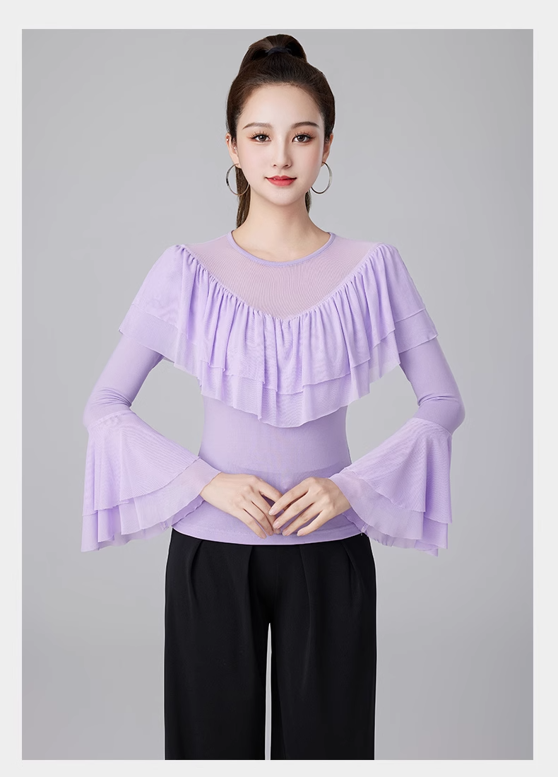 Современные танцевальные упражнения с высоким роговым рукавом -Лиф края латиноамериканская танцевальная рубашка танцевать танце