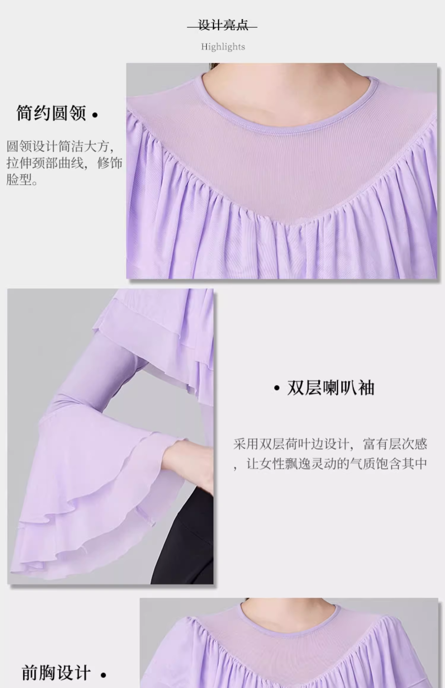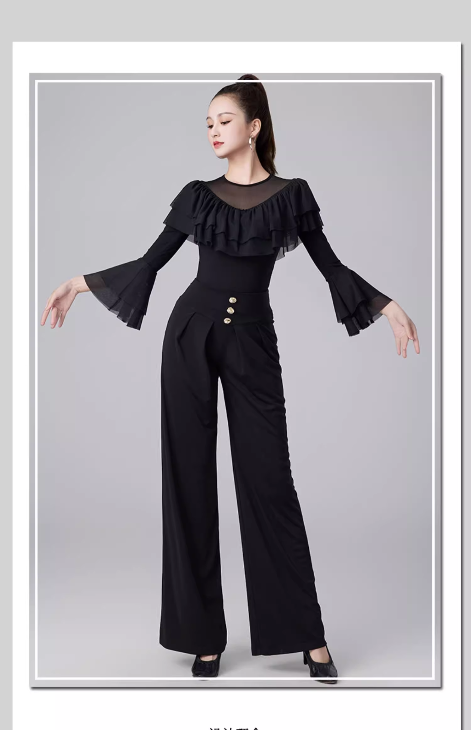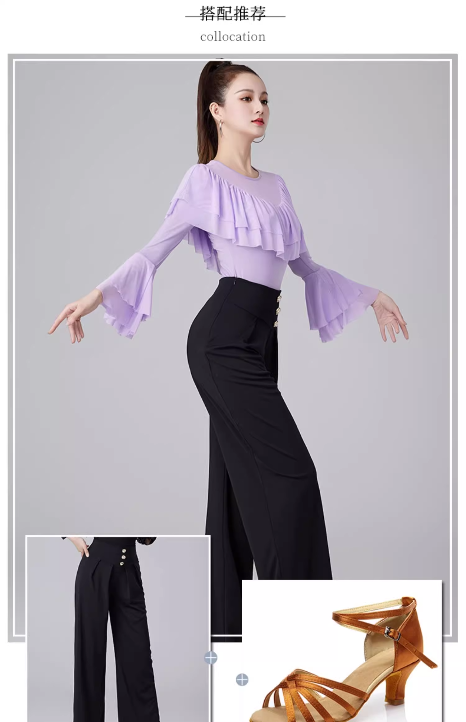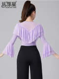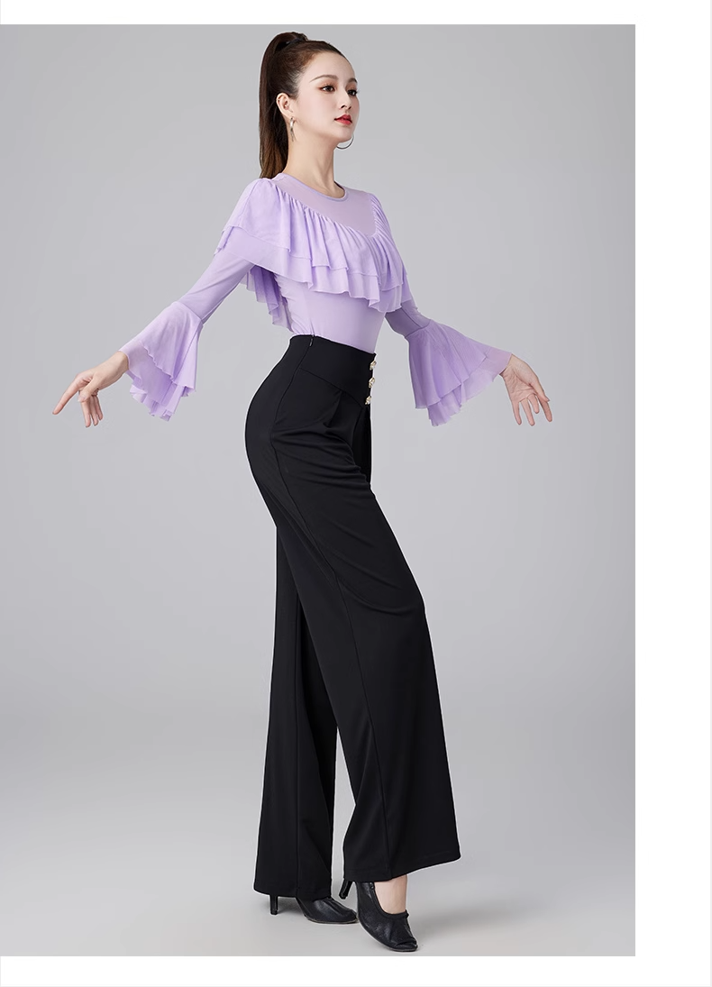 Современные танцевальные упражнения с высоким роговым рукавом -Лиф края латиноамериканская танцевальная рубашка танцевать танце