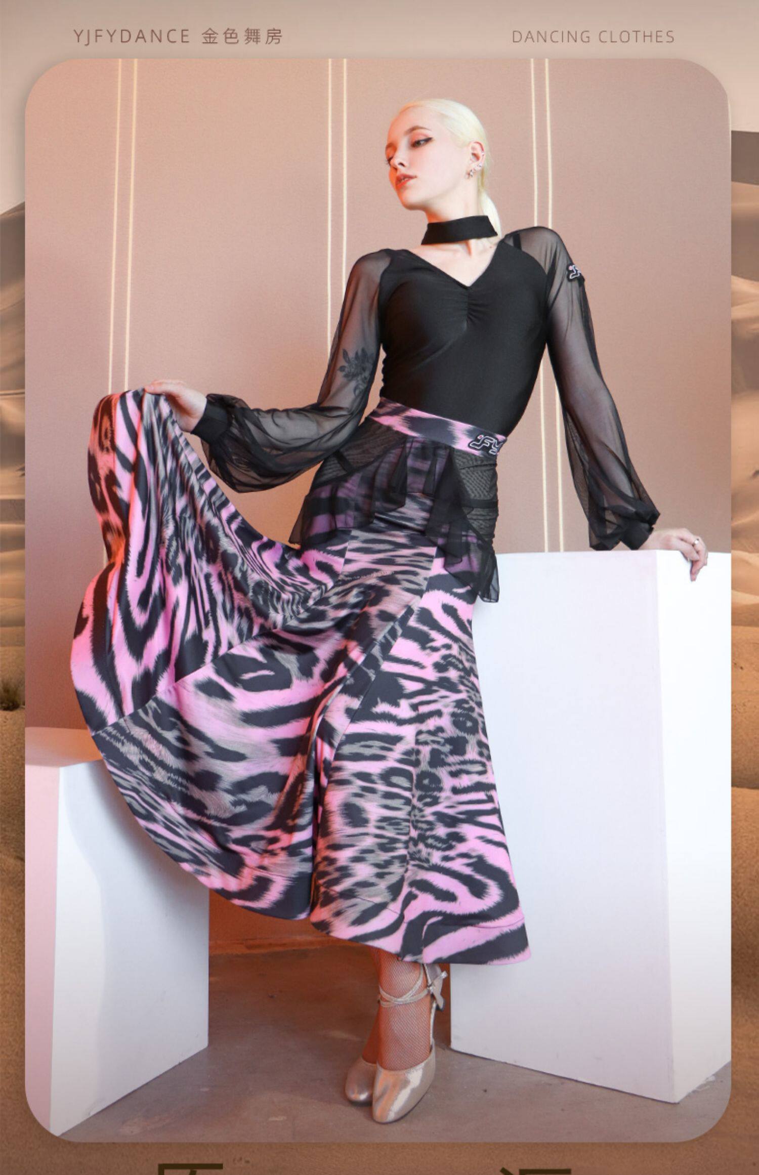 又见梵羽 Национальная стандартная танцевальная юбка женская сексуальная леопардовая костяная кость юбка современная танцевальная юбка LP561