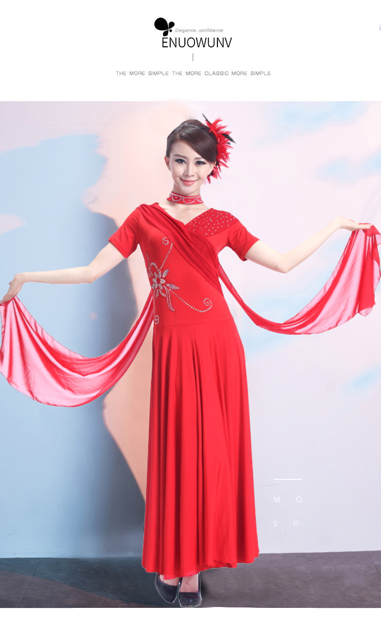 Новая национальная стандартная танцевальная юбка инкрустация, цветочные коротки -липкие современные танце