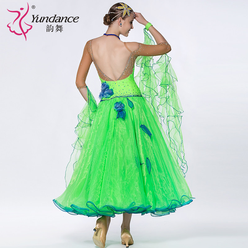 Yun Dance 2018 Национальный стандартный сериал Стандартный сериал Dance Dance Hook Flower Современная танцевальная юбка Walz платье