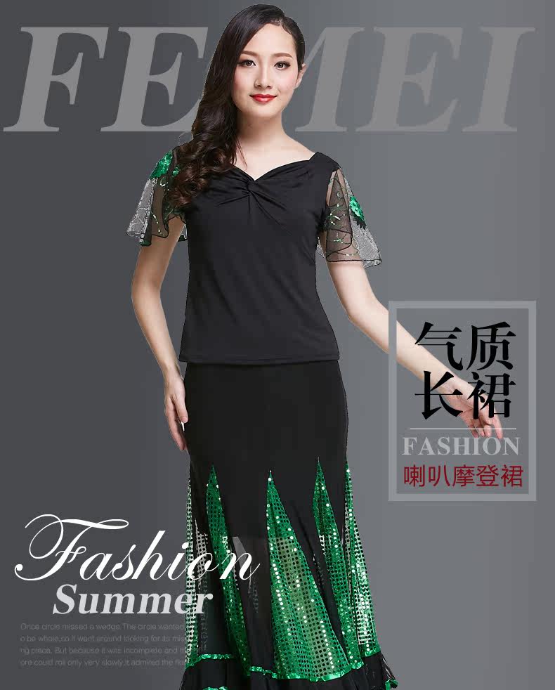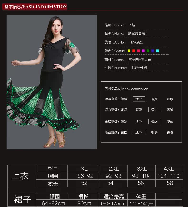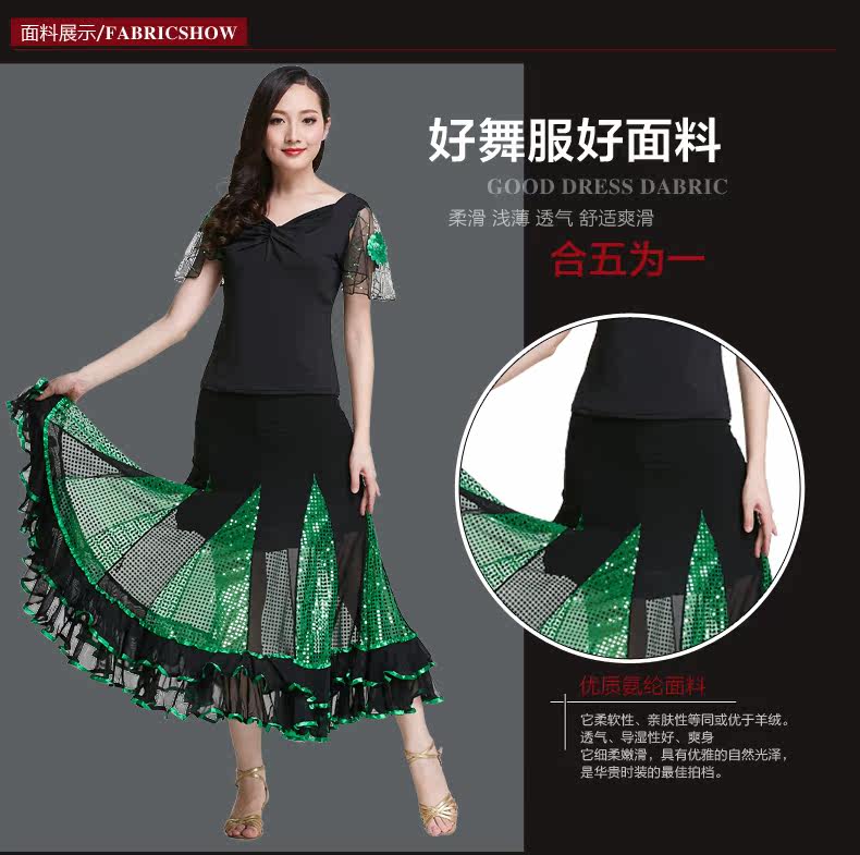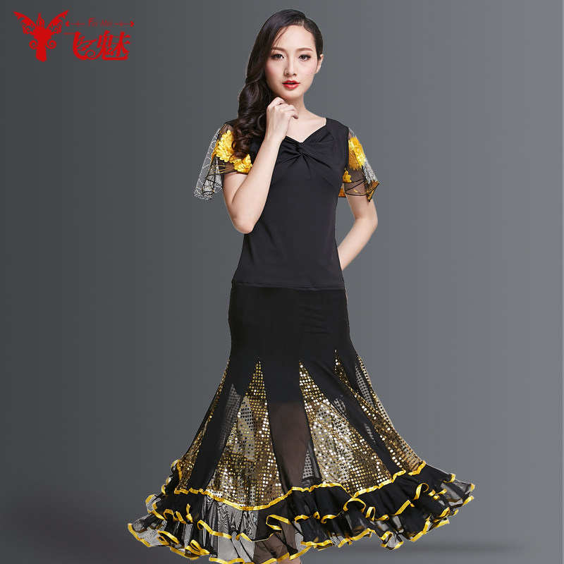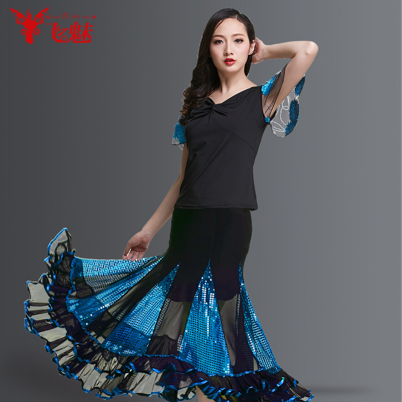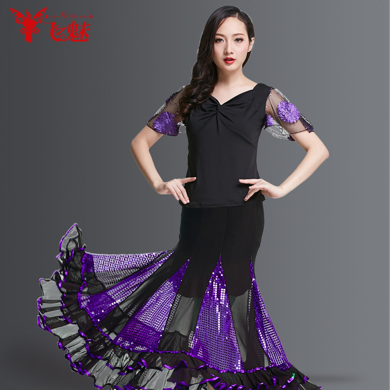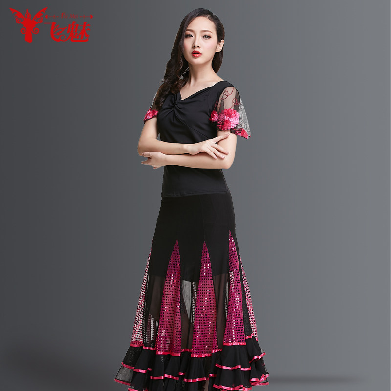 飞魅 Современная танцевальная юбка национальная барьма малифическая танцевальная юбка Walz Tango Big юбка Modern Dance Practice