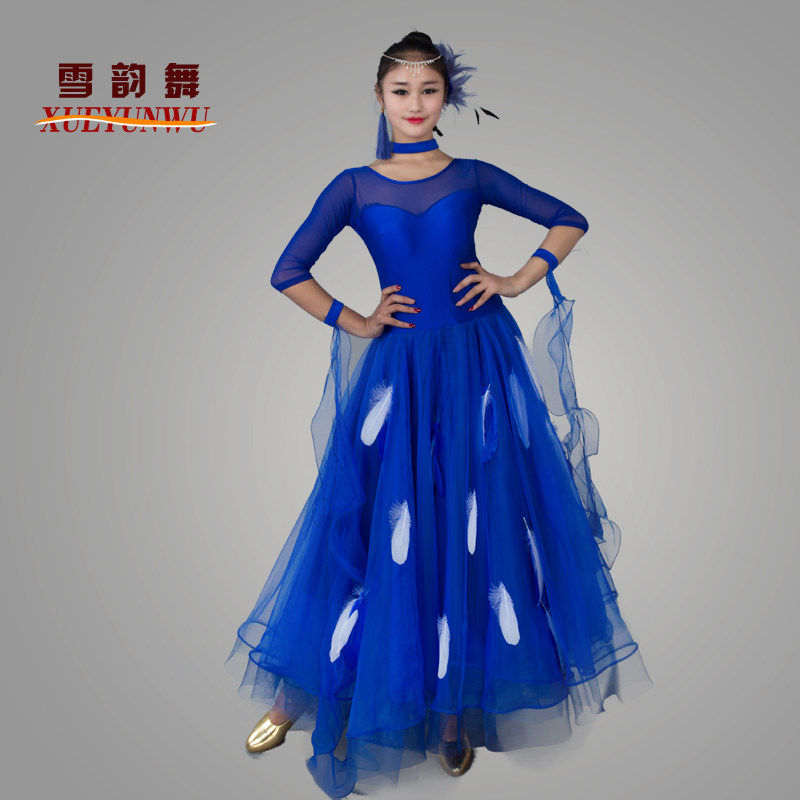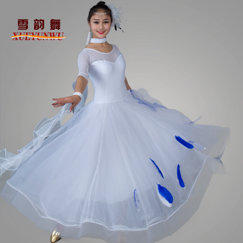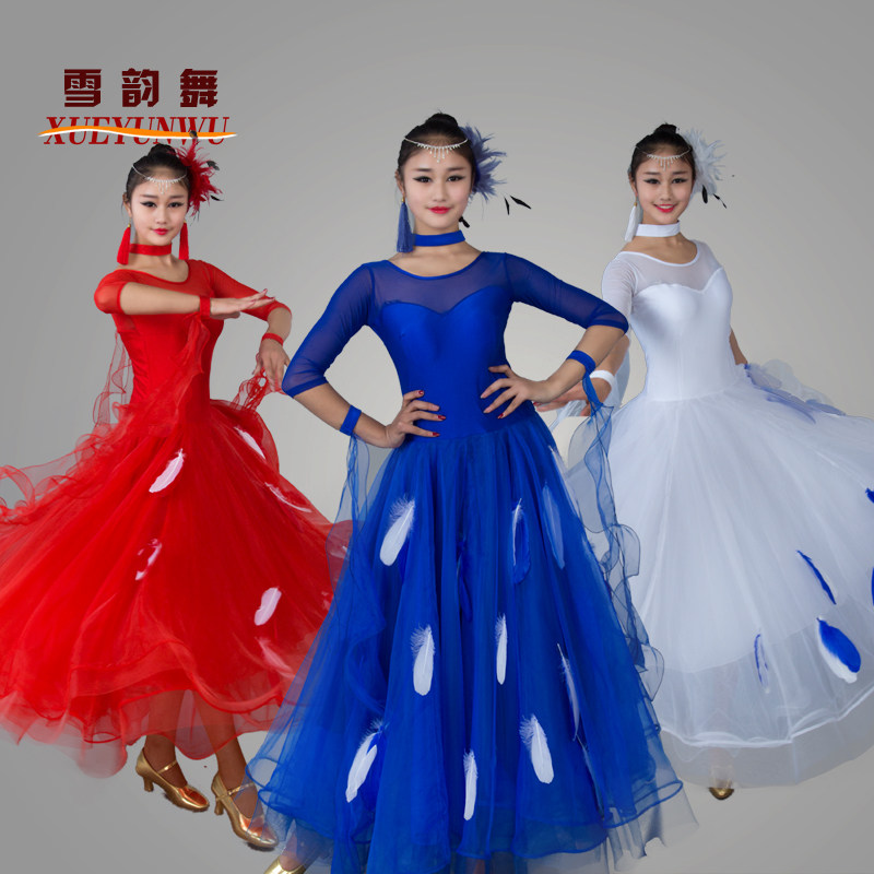 Новые перья современная танцевальная одежда национальные стандартные танцевальные платья юбка для конкурса Waltz Танцевальная юбка Big юбка MD052