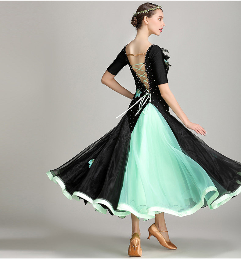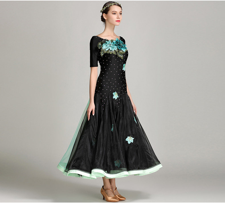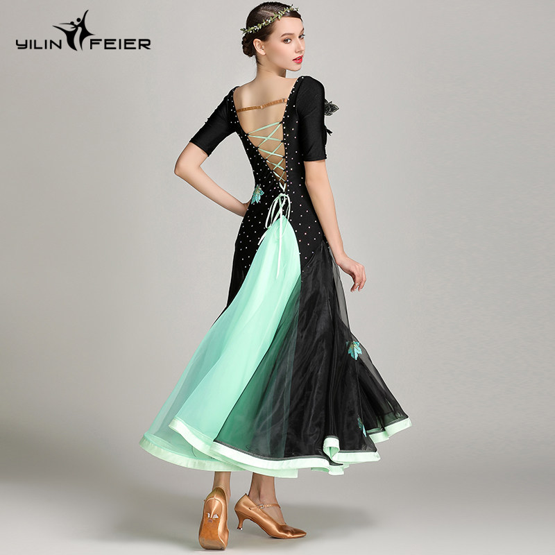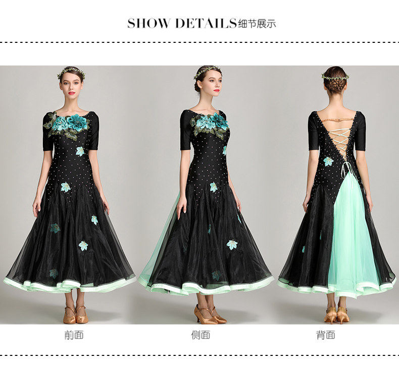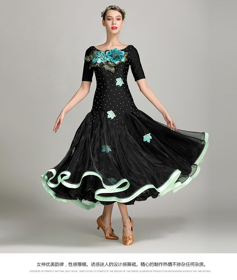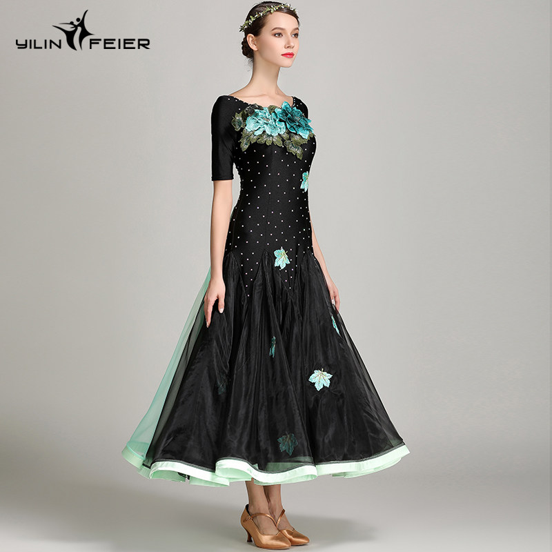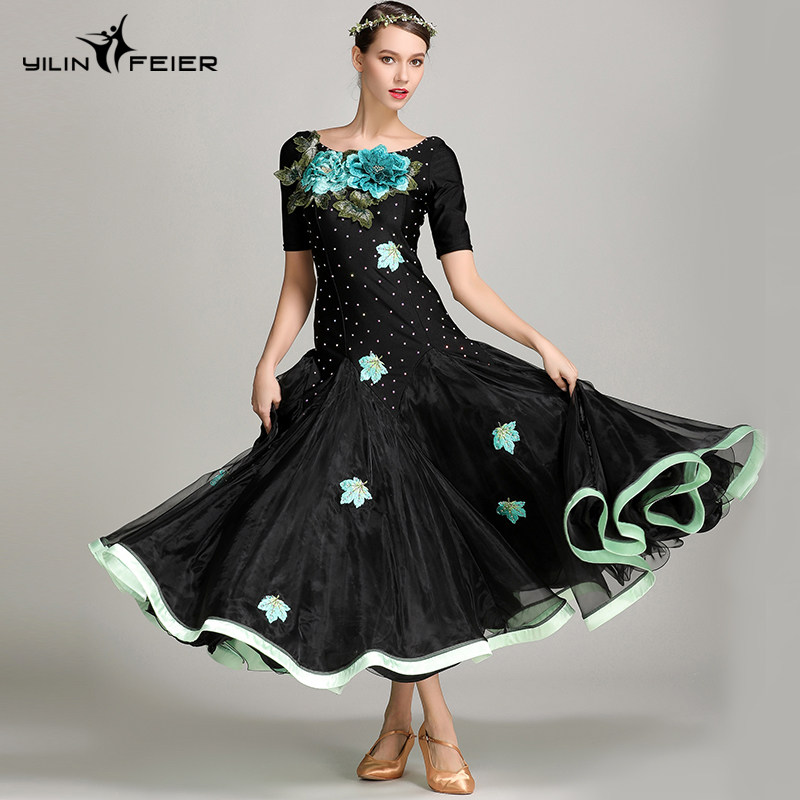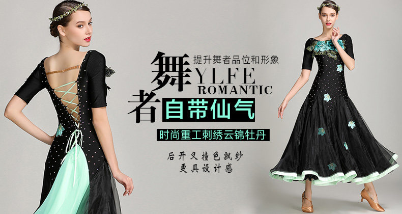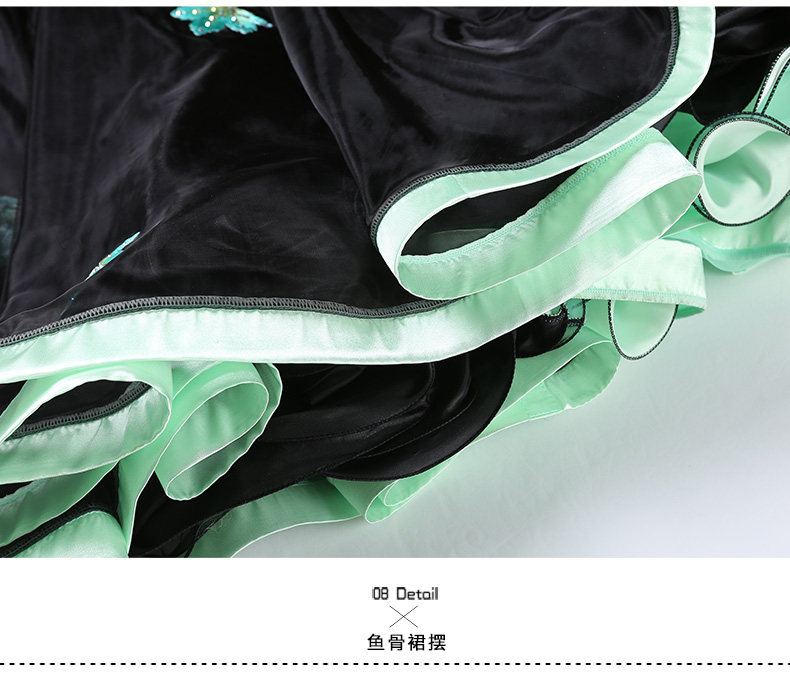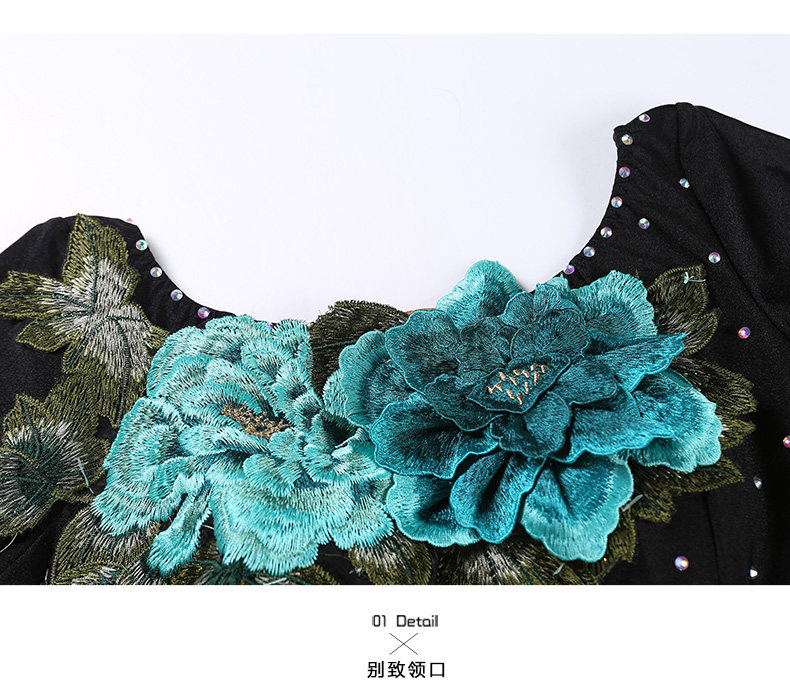 Платье десяти лет -лечебной танцевальной юбки с контрастной юбкой Линь Фейер, вышитым пионом, современным