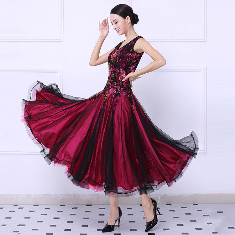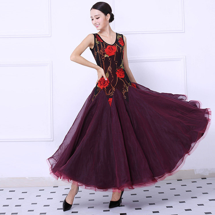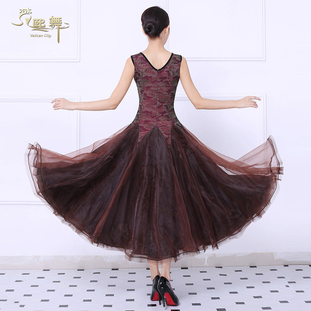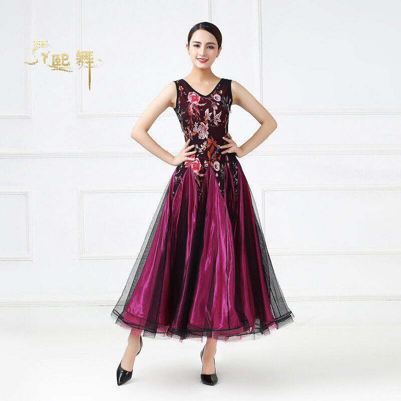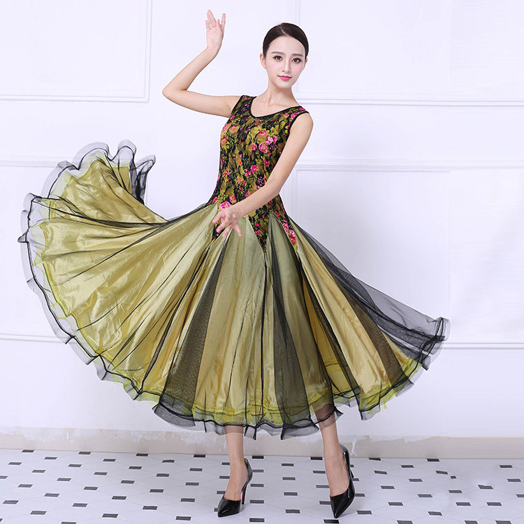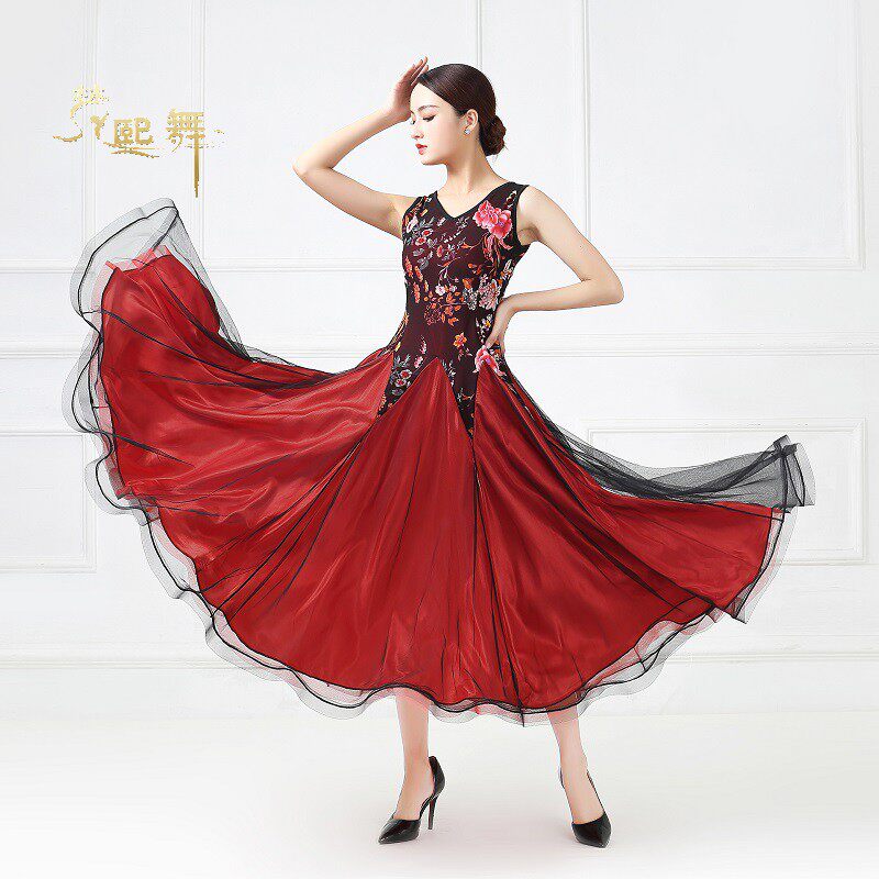 Танцевальная танцевальная одежда Большая юбка Новая национальная стандартная танцевальная конкурс Элегантная и современная танцевальная юбка без рукавов