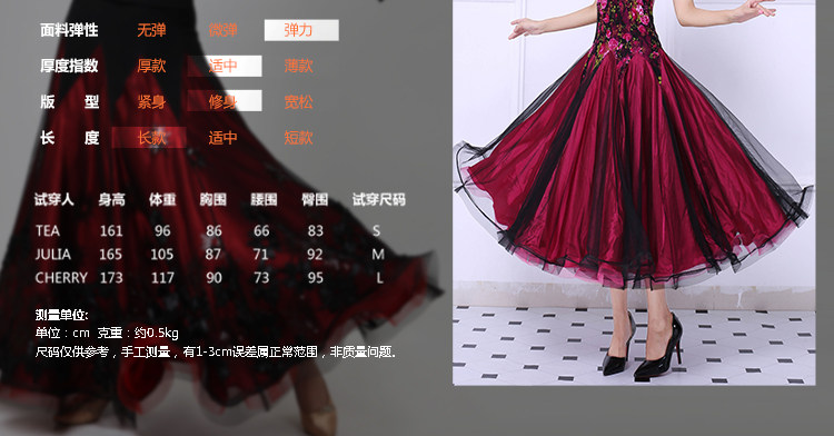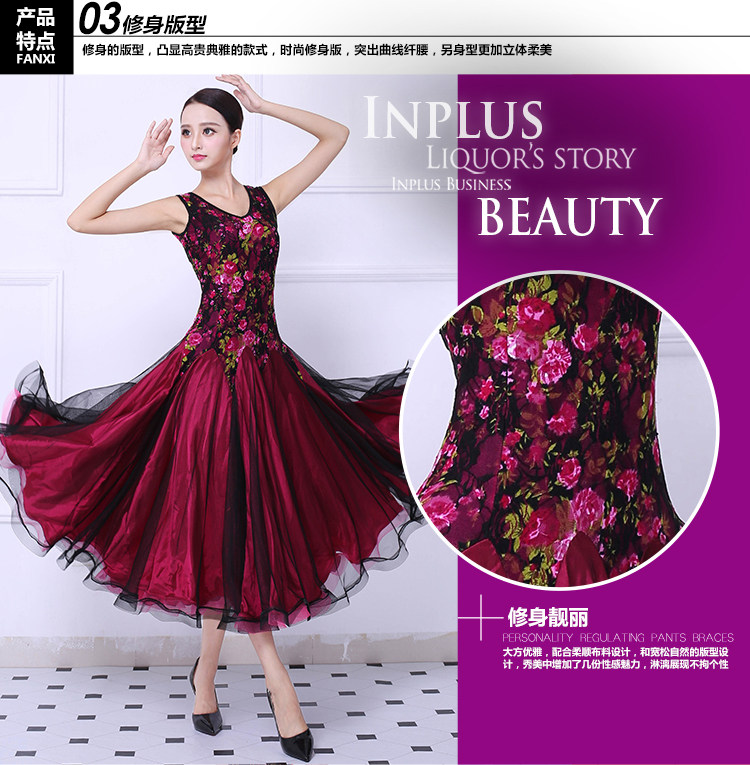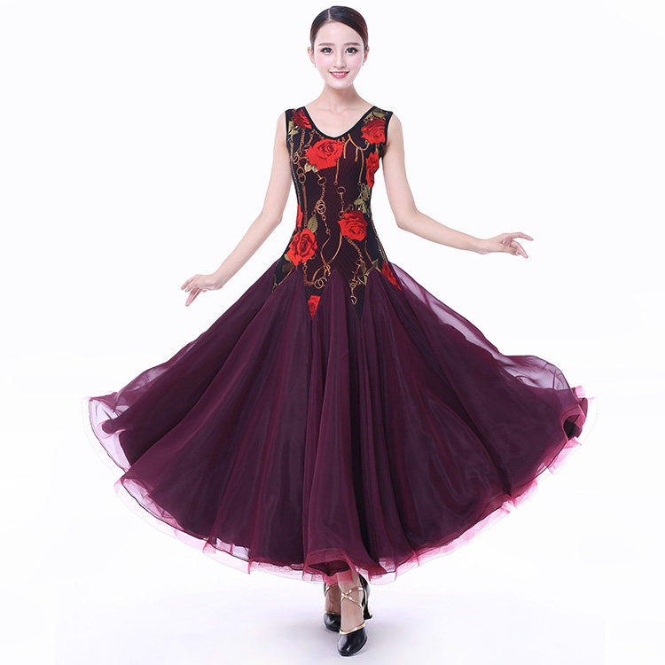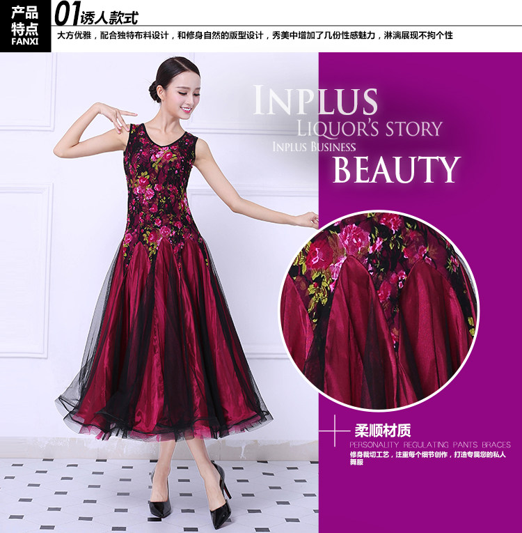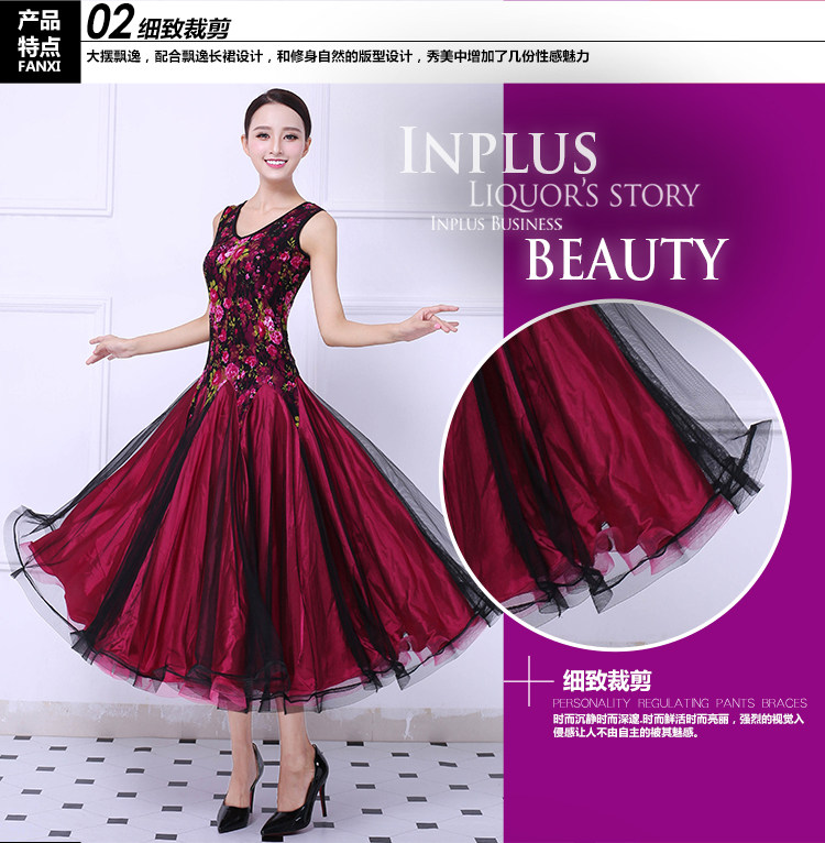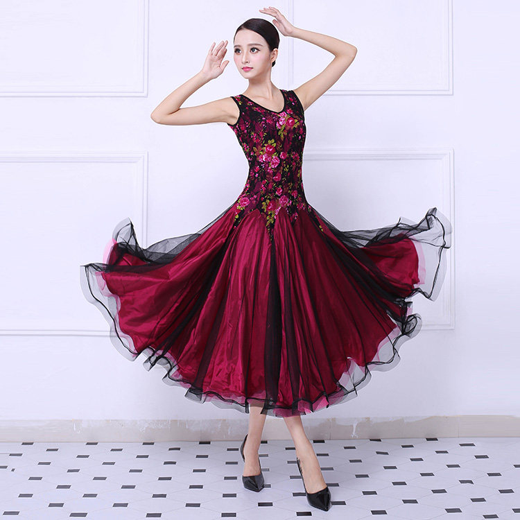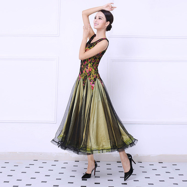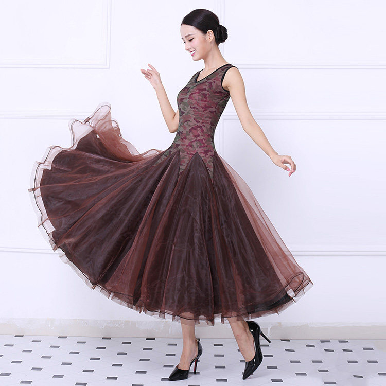 Танцевальная танцевальная одежда Большая юбка Новая национальная стандартная танцевальная конкурс Элегантная и современная танцевальная юбка без рукавов