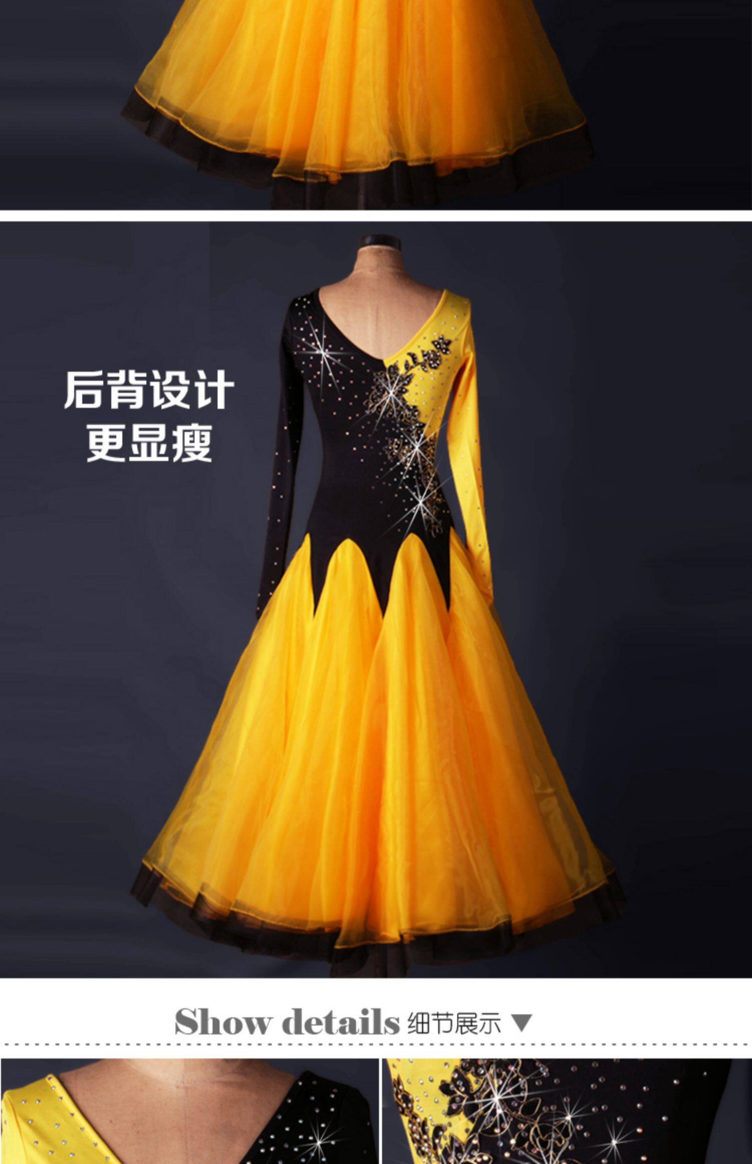 V -neck Diamond Standard Dance Drance Dress Wolz Dance Skir
