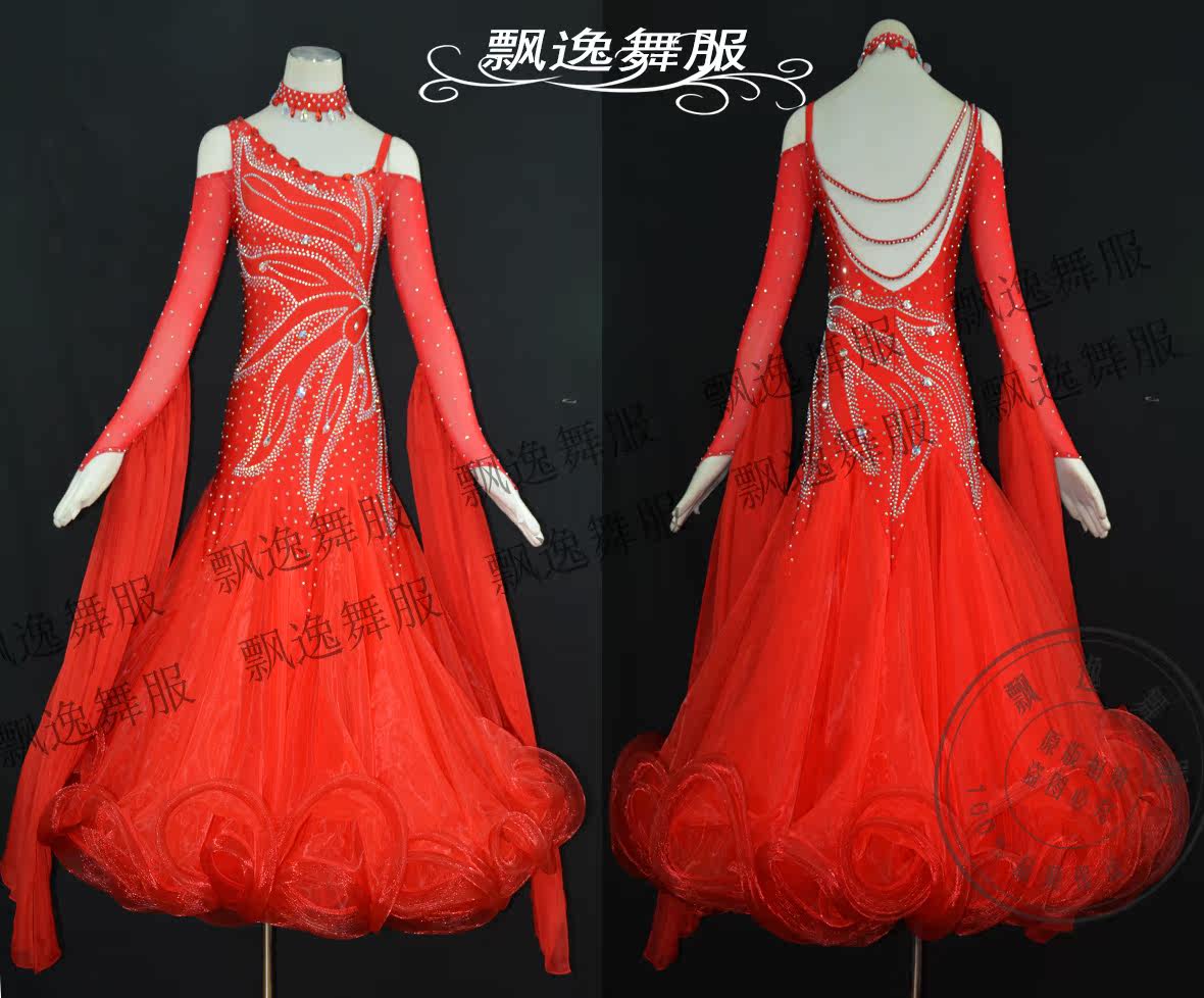 Элегантное новое современное танцевальное платье l для соревнований по бальным танцам, танго, вальс, большой красный 197, зима