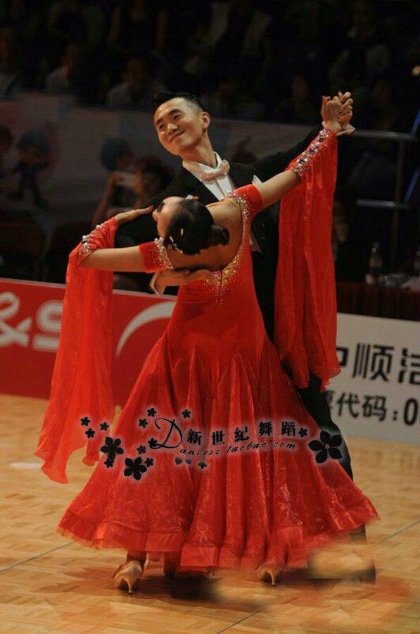 Новый современный танцевальный спектакль исполнение исполнения национальной стандартной танцевальной юбки платье платье сцены установлено Waltz Body