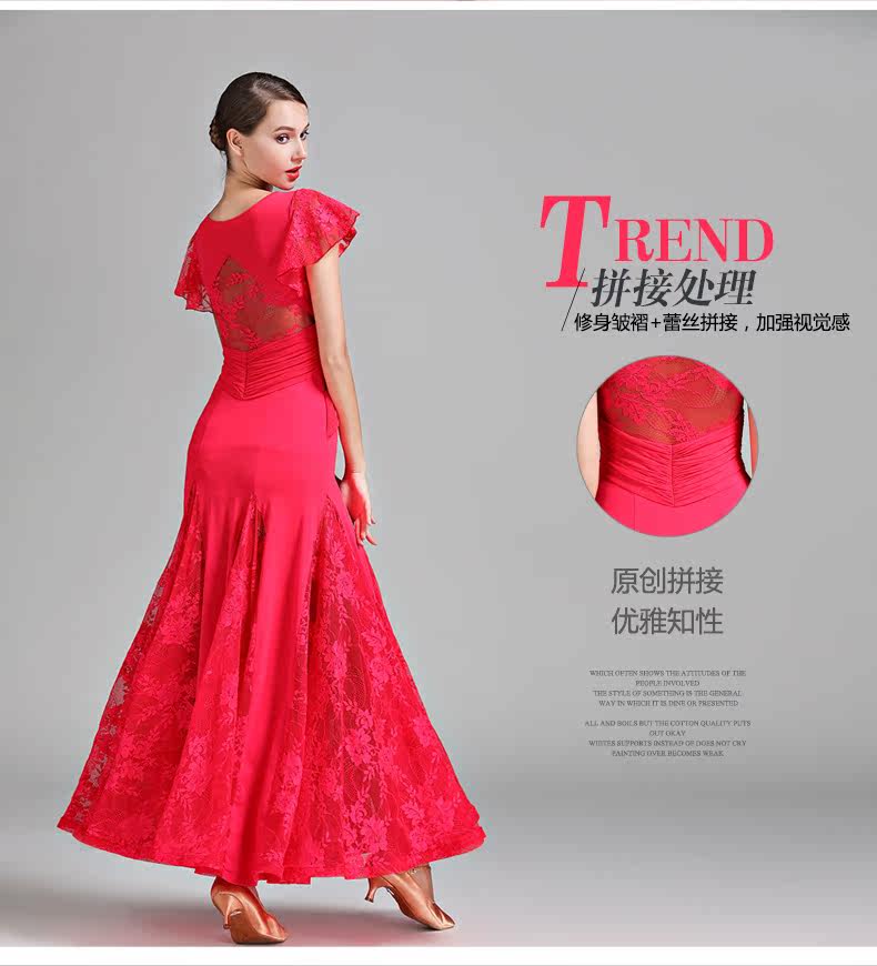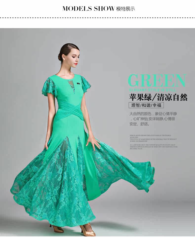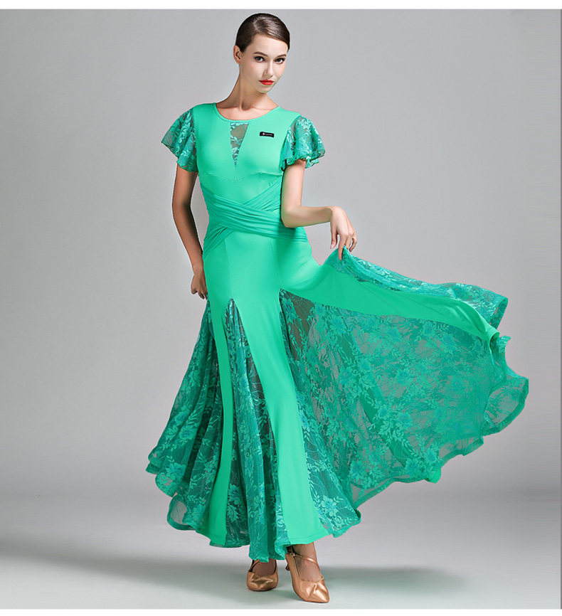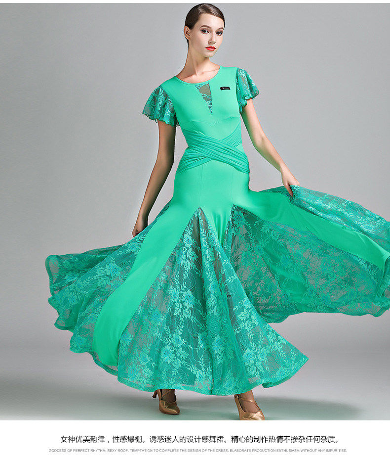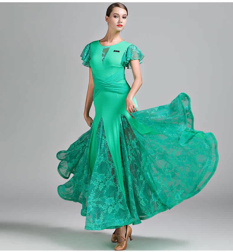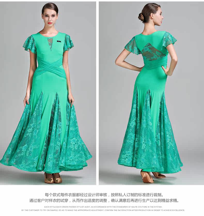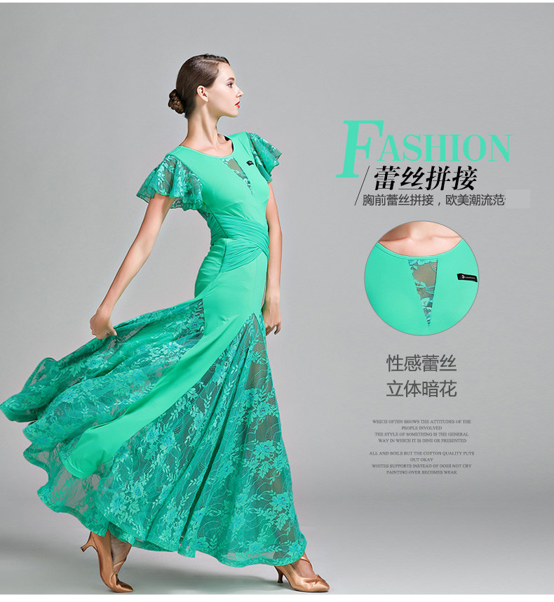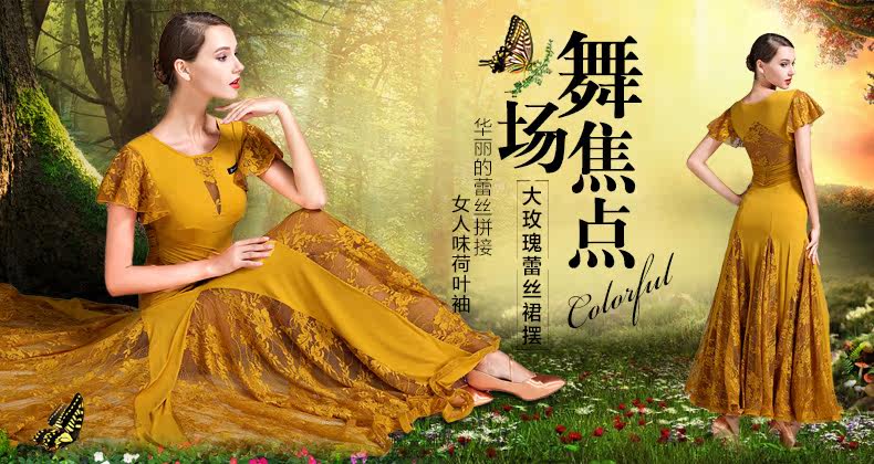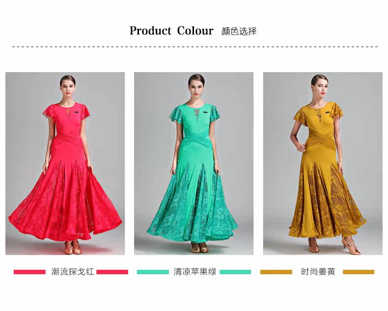 Qingcang Трехноколор лотосной листовой рукав современная танцевальная юбка S7012 Национальная стандартная танцевальная служба кружева Petone Play Dance Skirt