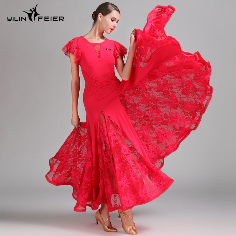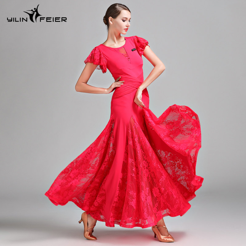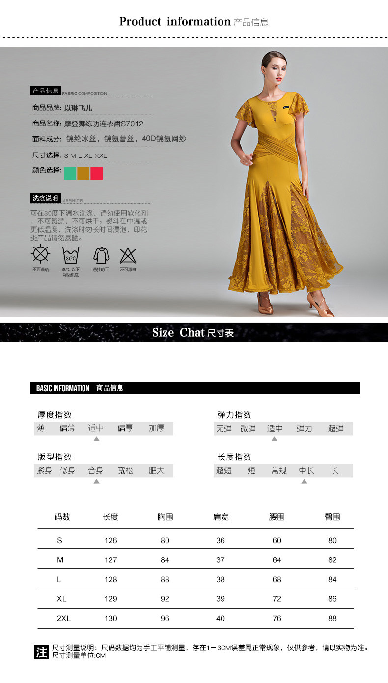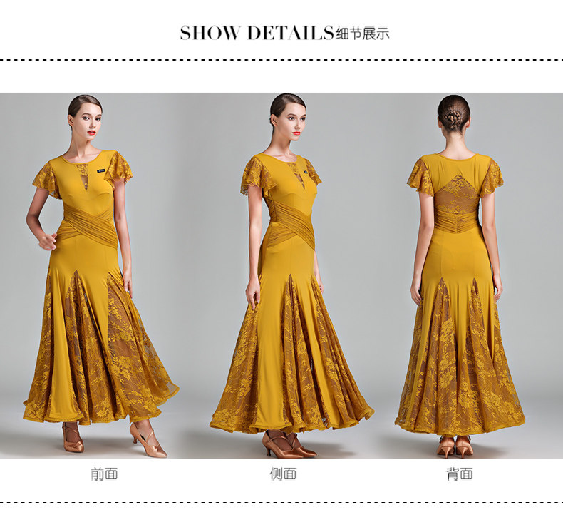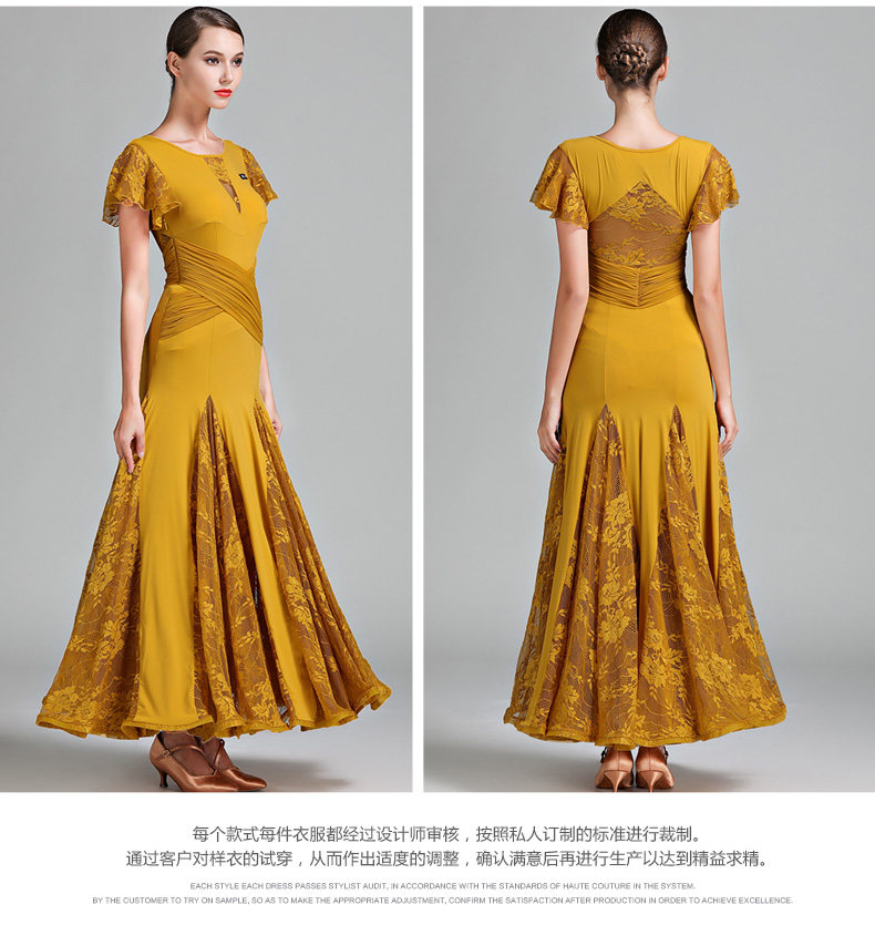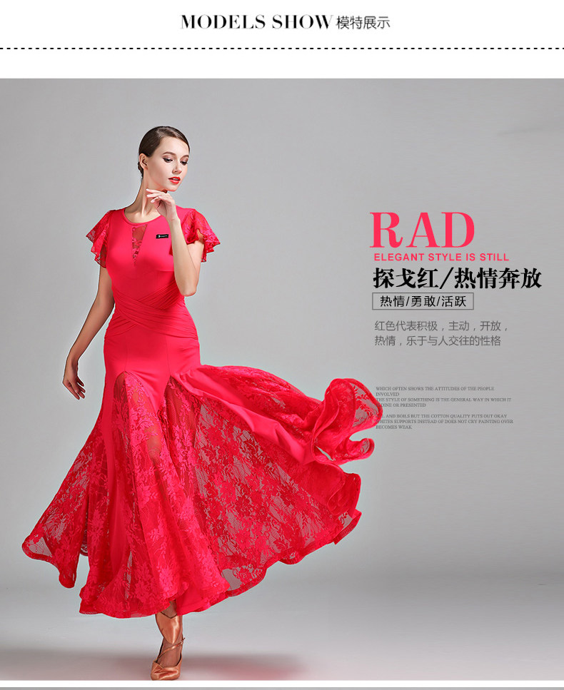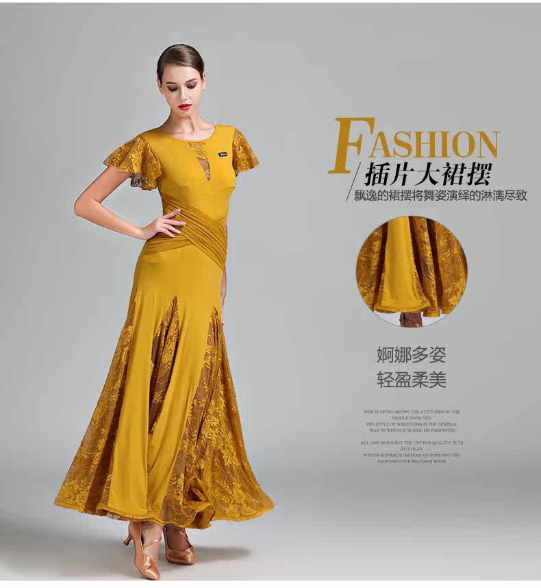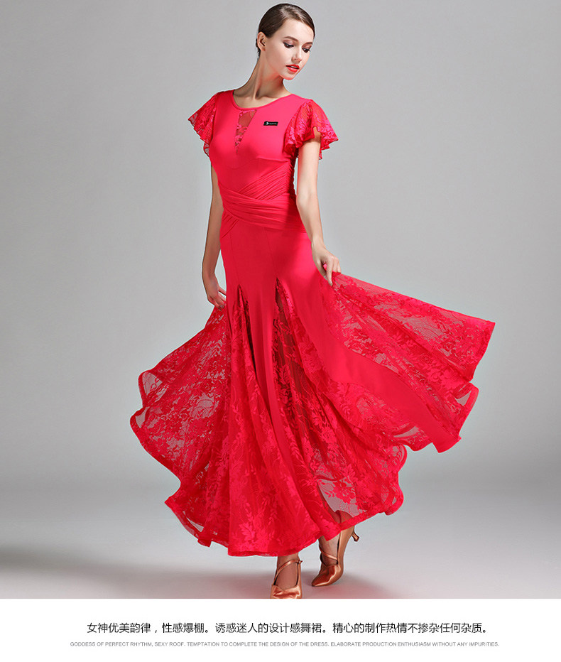 Qingcang Трехноколор лотосной листовой рукав современная танцевальная юбка S7012 Национальная стандартная танцевальная служба кружева Petone Play Dance Skirt