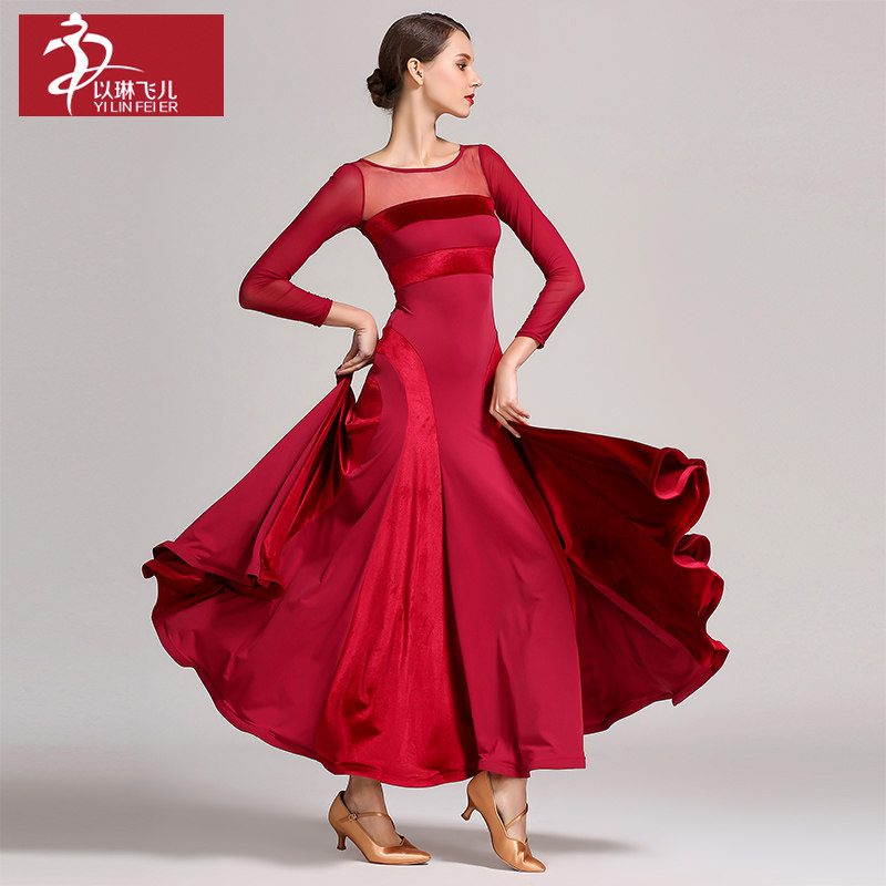 Yilin Feier Velvet с длинным рукавом Современная танцевальная юбка S9047 Национальная практика стандартной танцевальной одежды сыграла в Pettytest Clothing Clothing